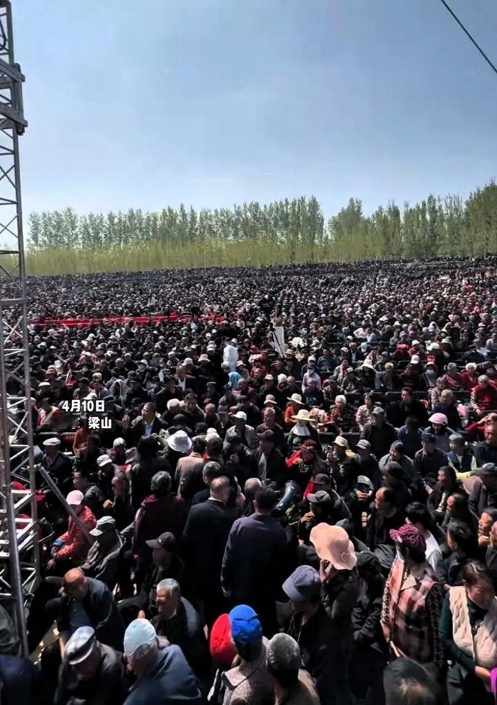 六万人聚集,公安在现场维持秩序,120救护车现场守候,群众热情空前高涨,山东梁山,出啥大事了?
