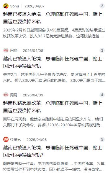 还有一个现实压力来自美国市场。越南对美出口占GDP的比重不小,2025年美国突然宣布加征46%的对等关税,还额外加了40%的转运货物惩罚性关税,专门堵借越南中转的商品。加上能源危机火上浇油——中东局势紧张,国际油价飙到120美元一桶,越南80%的客货运输都靠公路,油价一涨物流成本直接暴增。双重打击之下,越南高层终于统一了意见:必须尽快换标准轨,必须对接中国铁路网,产业升级和能源安全都得靠这条铁路撑着。