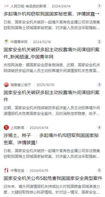 国家安全机关这几年确实抓了不少人。像有个机关单位的涉密人员李某某,迷上网络赌博欠了一屁股债,为了还钱主动联系境外间谍,把八十多份涉密文件拍照发过去,最后被判了十二年。还有那个农业科技公司的总经理朱某某,打着“合作制种”的旗号,把优质稻种偷偷卖给境外,最后被判处有期徒刑一年六个月。这些人要么是贪,要么是蠢,要么是又贪又蠢,结果就是把自己的国家给卖了。