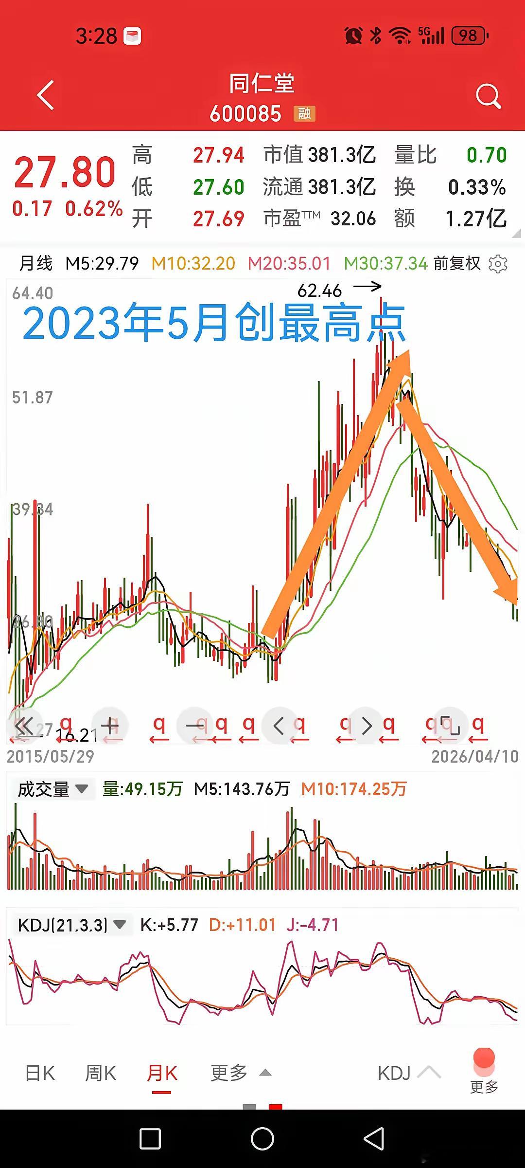 同仁堂被深套一点不冤枉,看看2009年以来的年K线就明白了。