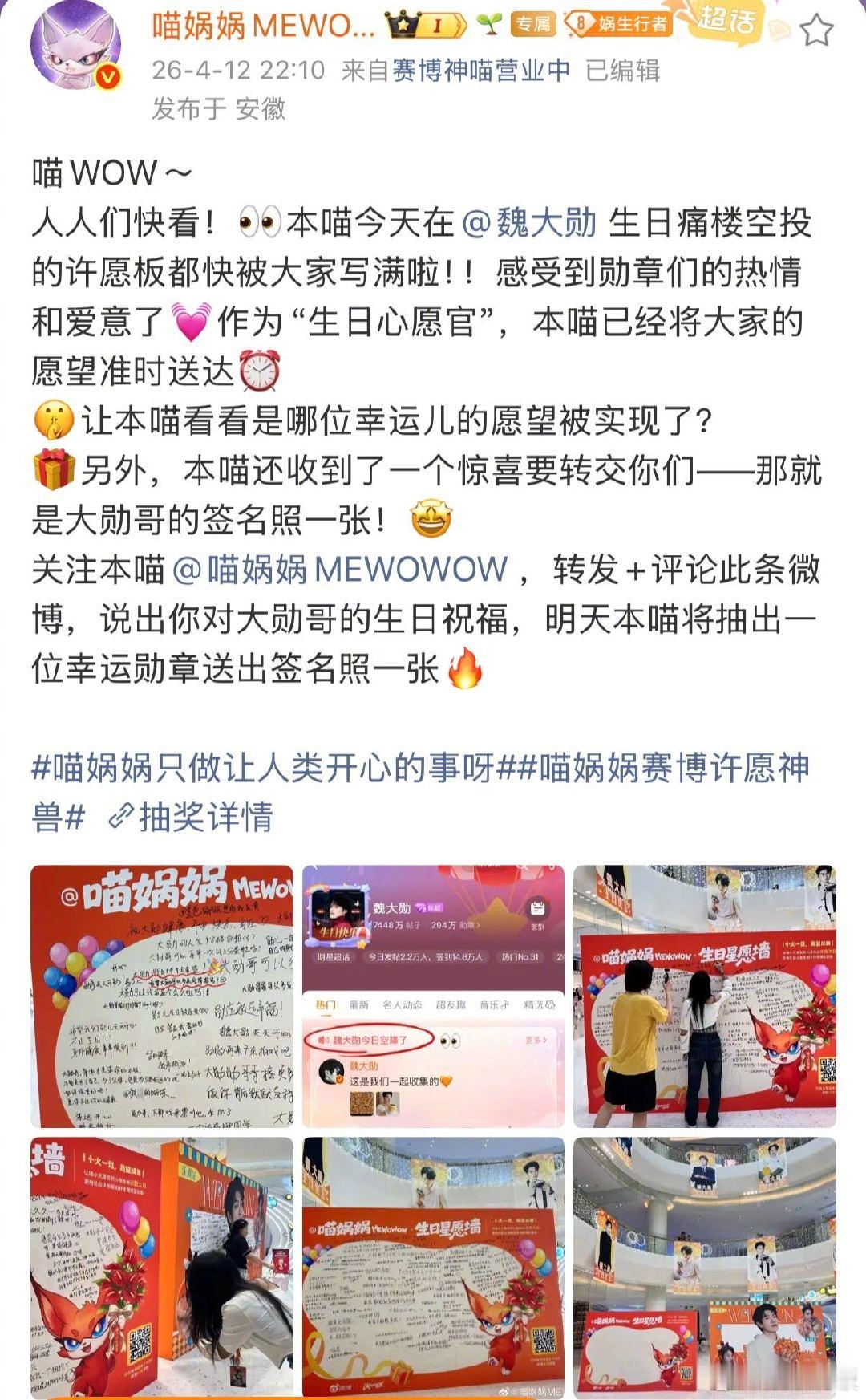 魏大勋亲签愿望被喵娲娲实现了在魏大勋生日痛楼许愿有多灵 勋章们这波福利拉满了!在生日痛楼许的心愿,真被喵娲娲兑现了!说到做到的宠粉,这波直接封神!