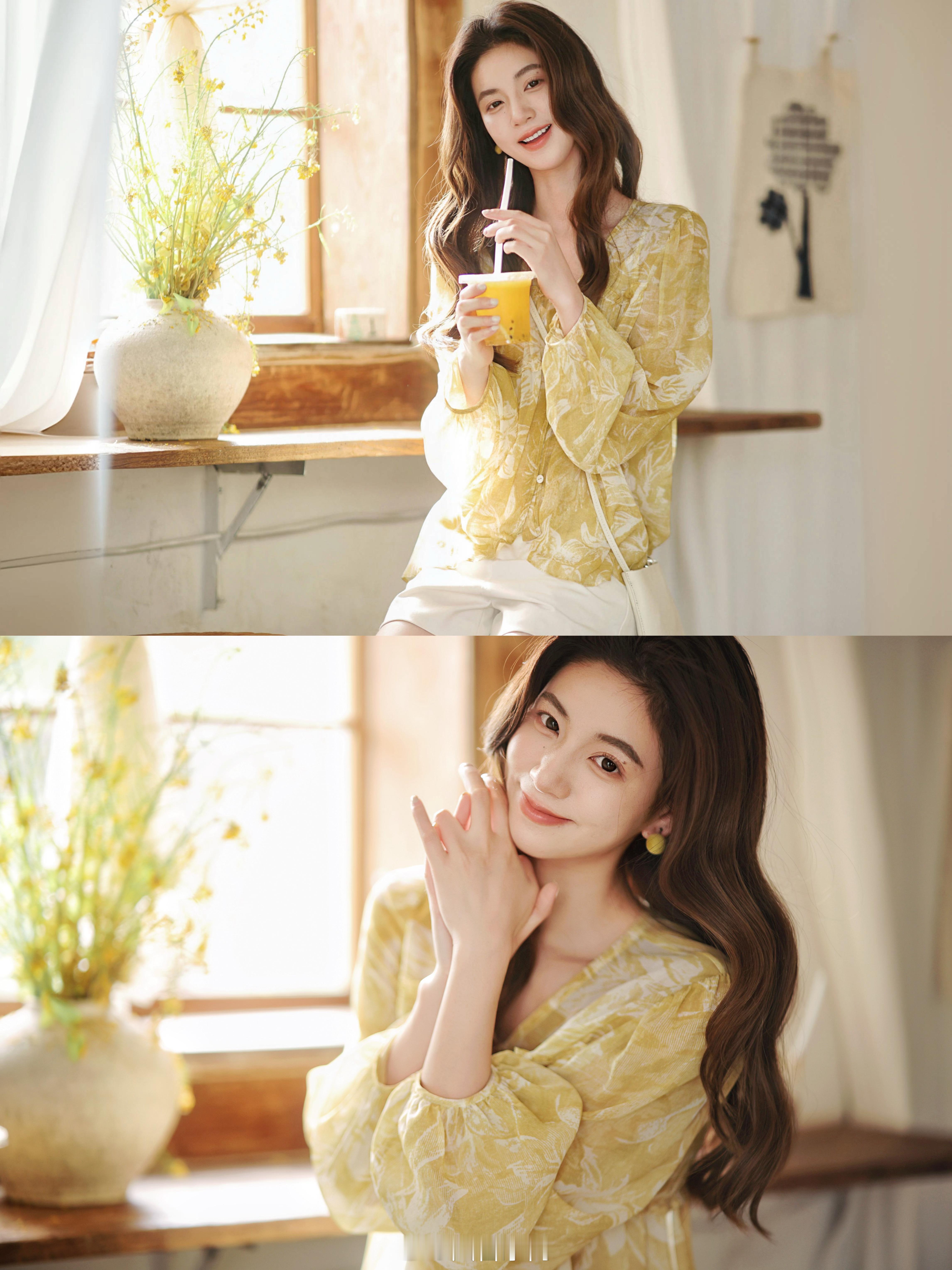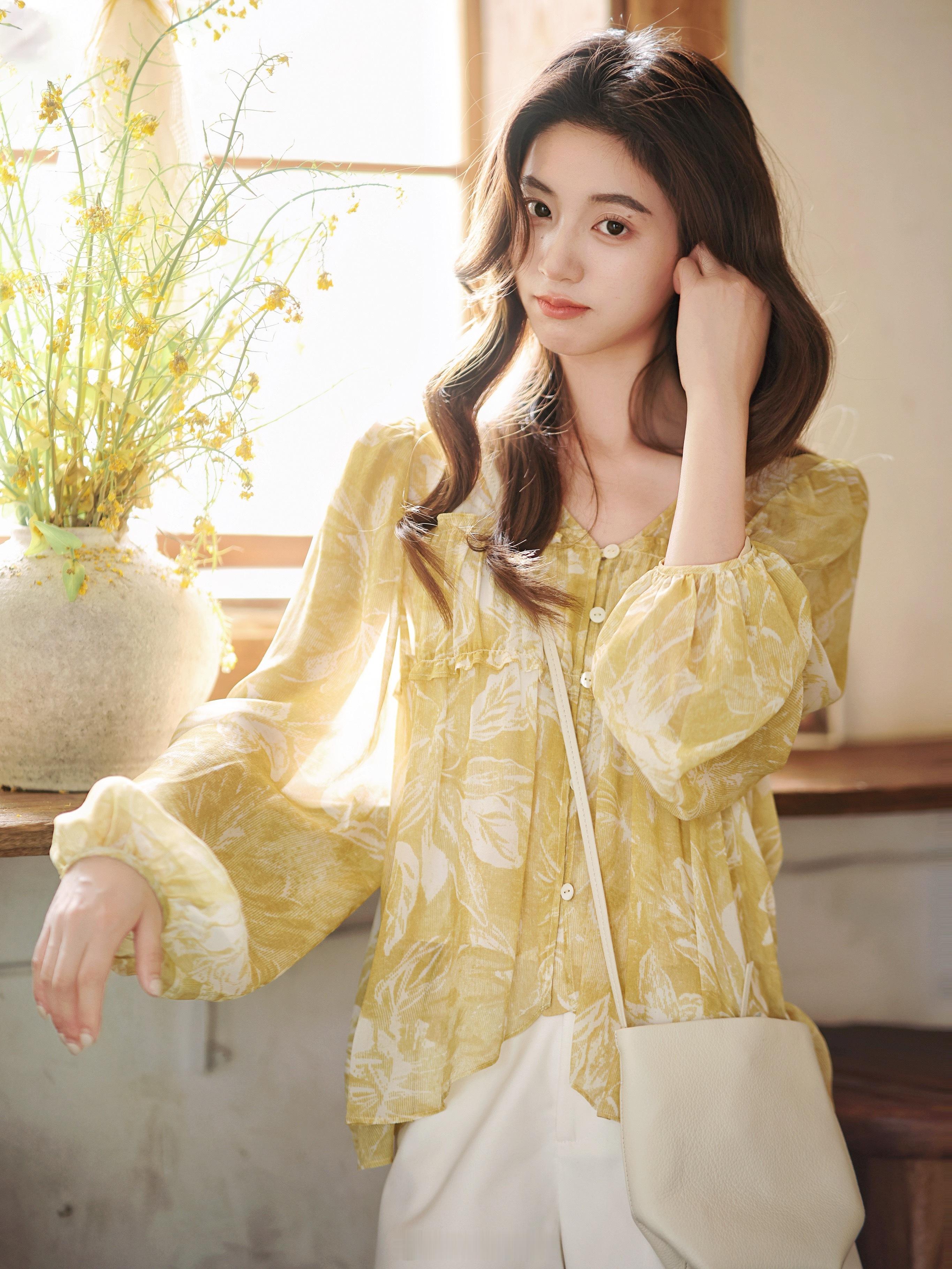 吸睛度max的小衫!100真丝+浅浅黄印花是明媚夏天最好的代名词吧!