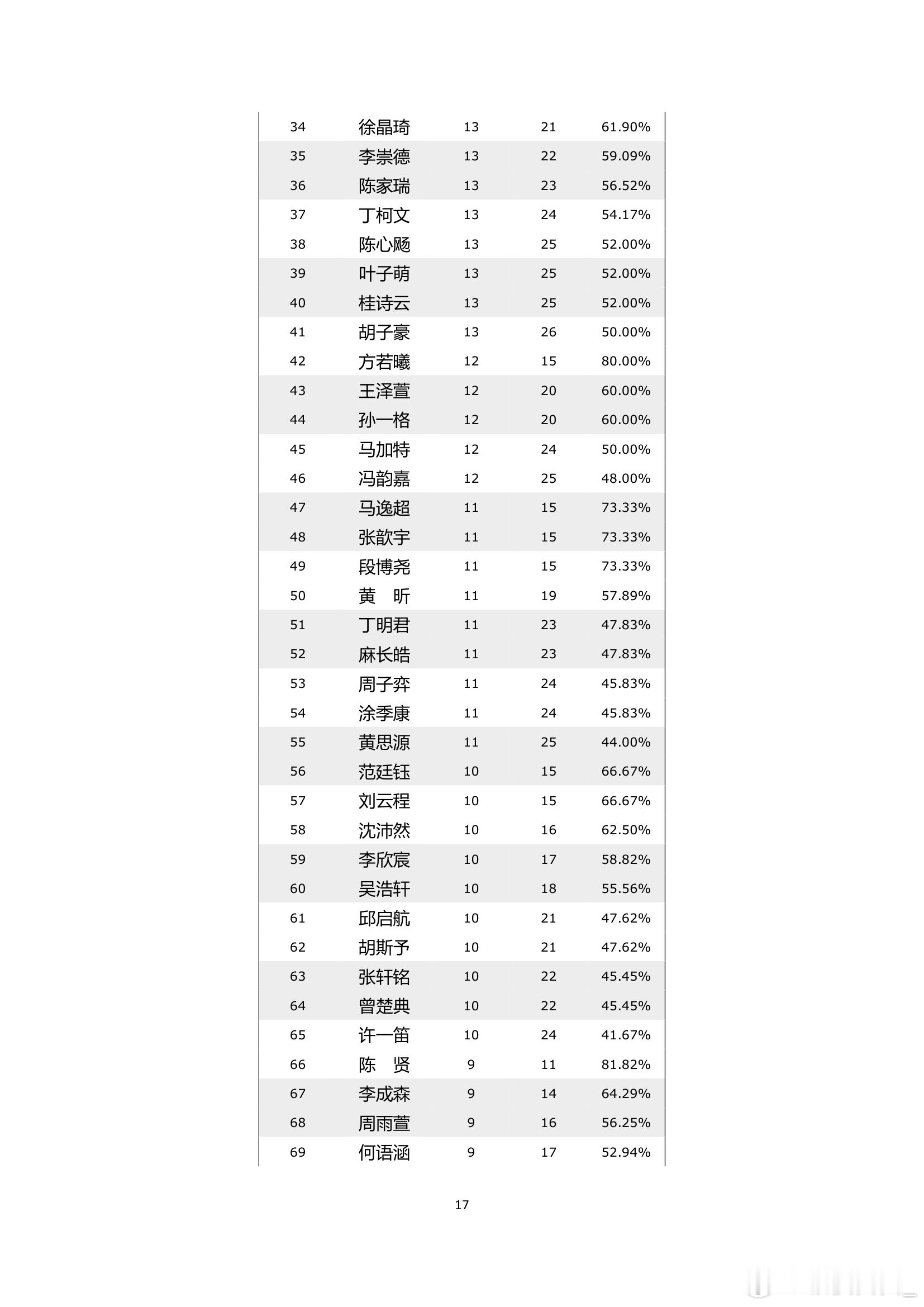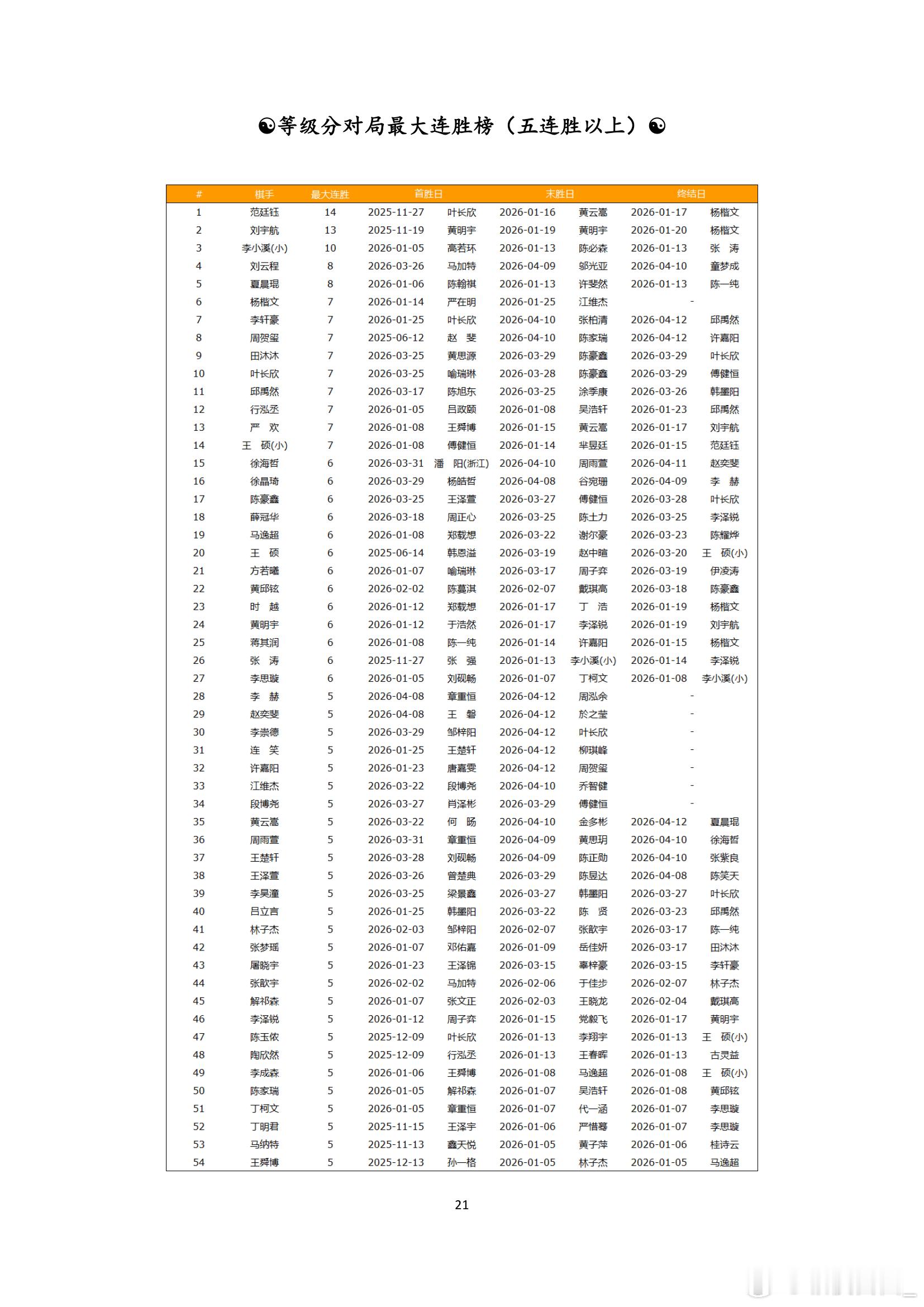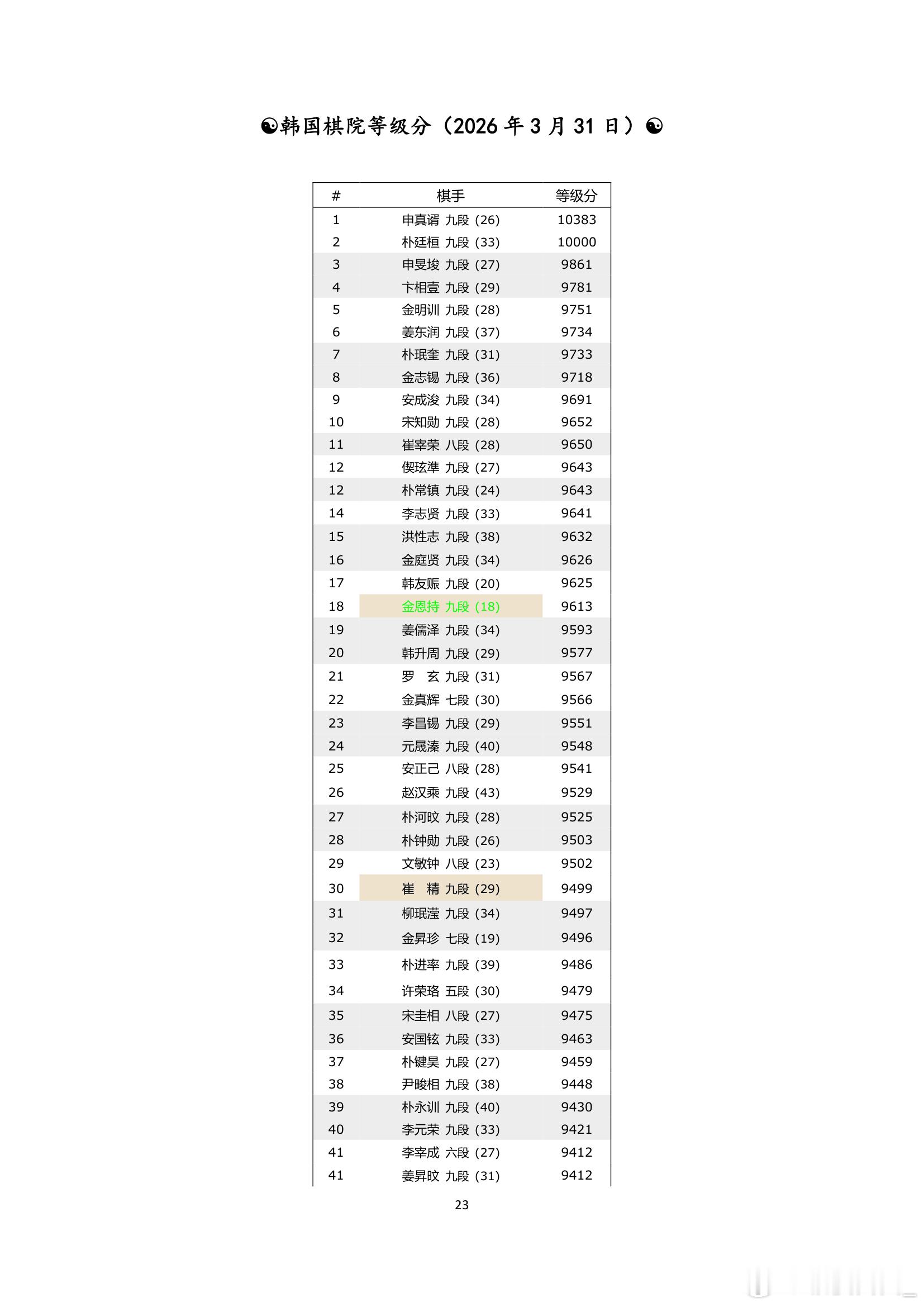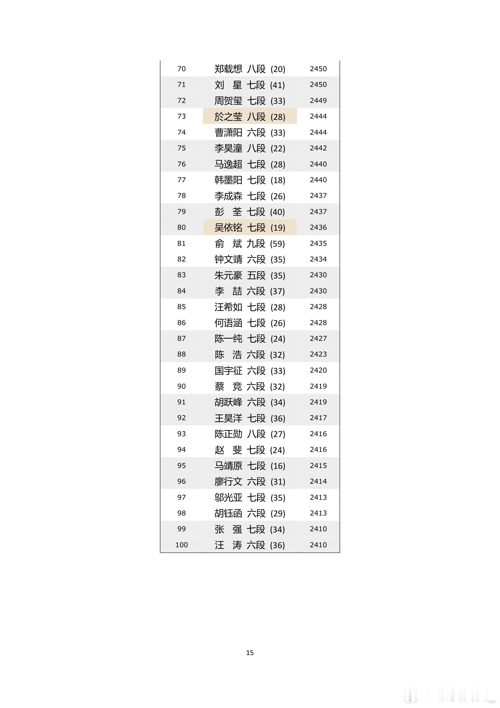 围棋职业棋手等级分