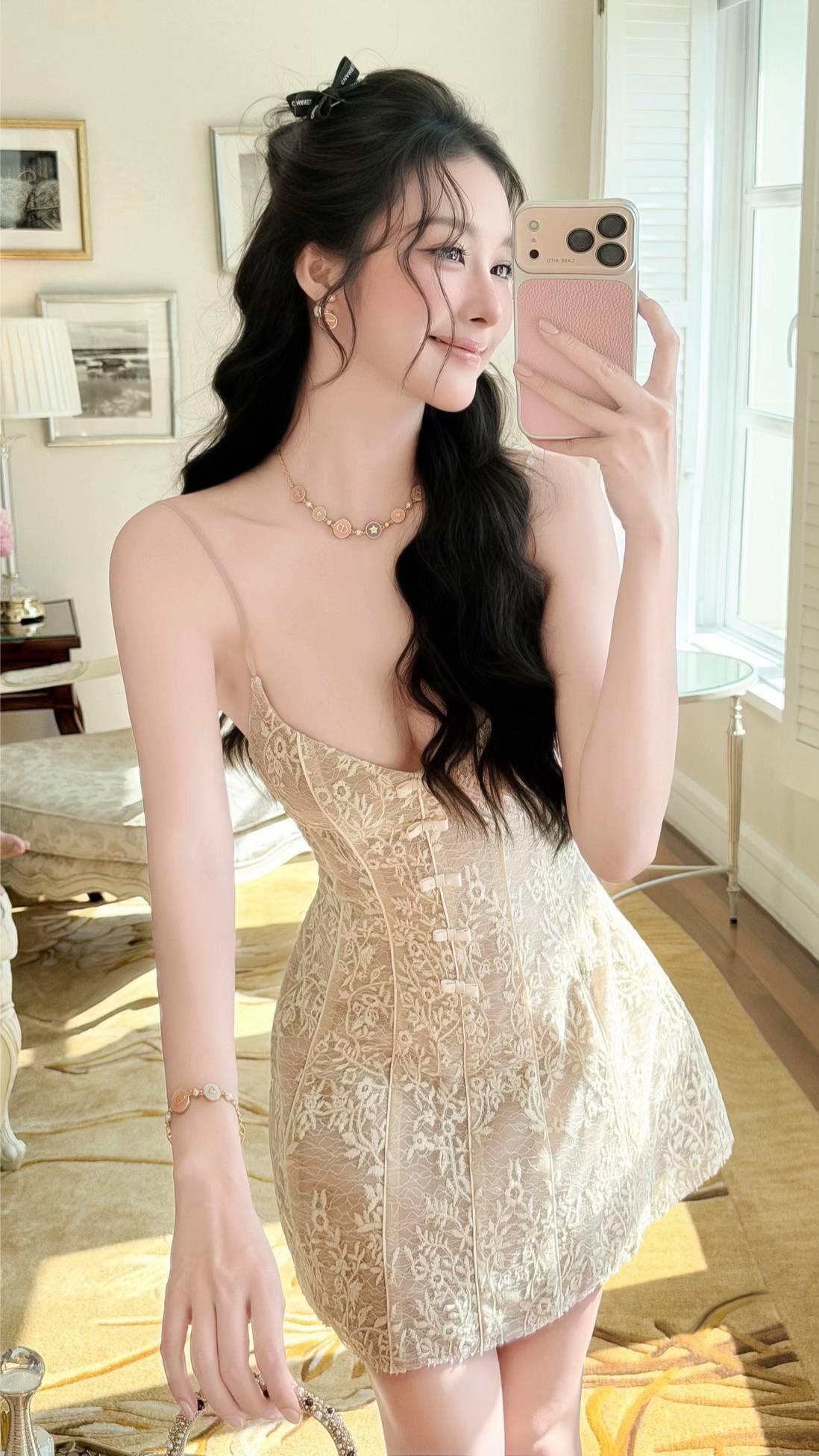 吊带裙简直是优雅与时尚的代名词!就像沈梦辰身着浅蓝碎花吊带长裙,在椰林沙滩的光影