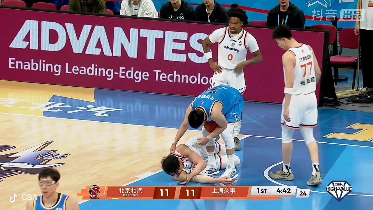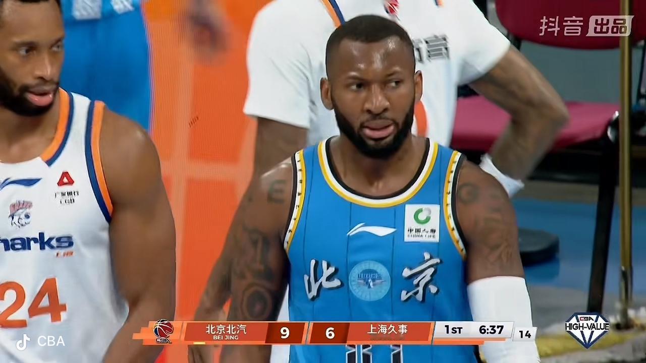 在刚刚结束的 北京北汽男篮主场迎战上海久事男篮的第一节比赛中,北京队暂时以 18比24落后。