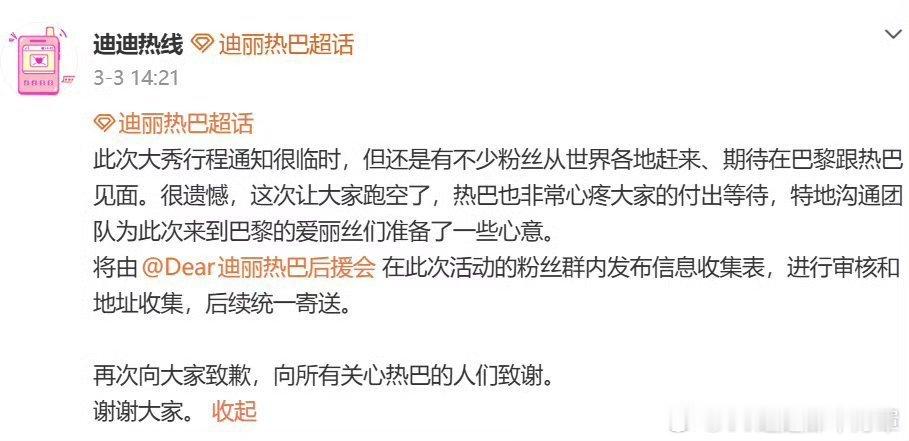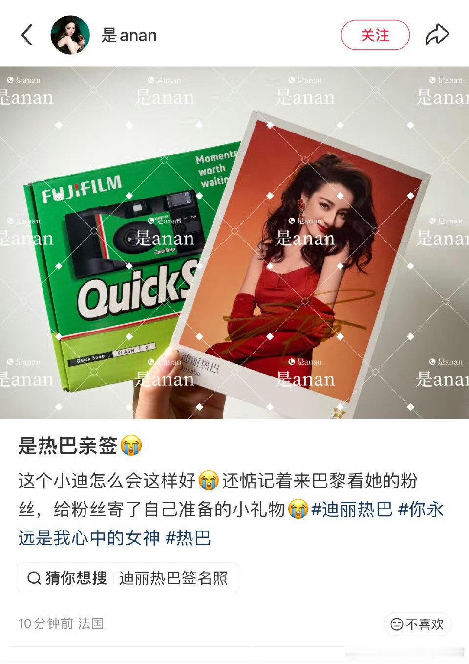迪丽热巴补偿去巴黎的粉丝热巴补偿粉丝的礼物真不错诶,很有诚意也花了心思,姐姐真好