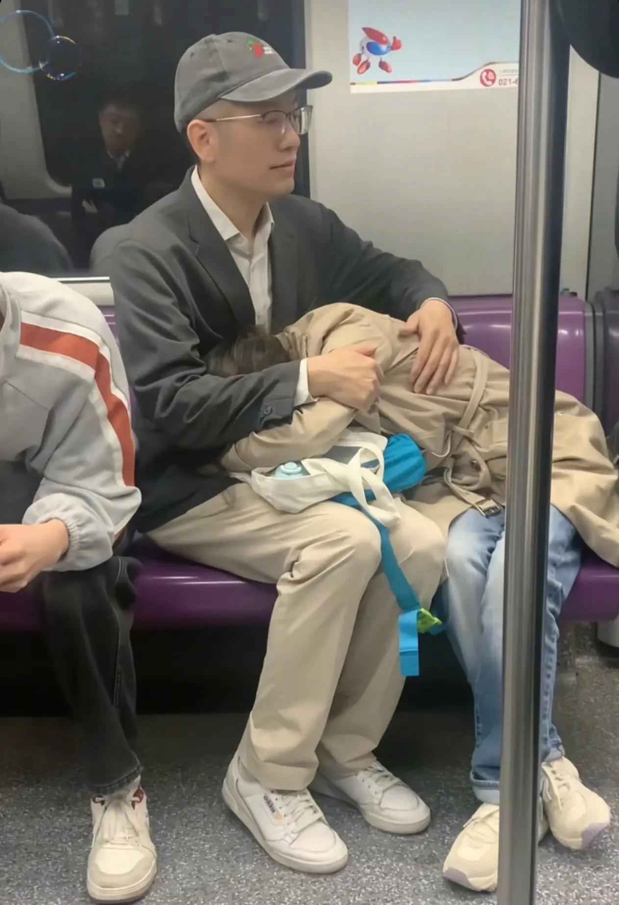 今天坐地铁,亲眼撞见最动人的爱情!男生穿着干净的西装,搭配休闲裤,整个人清爽又稳重。