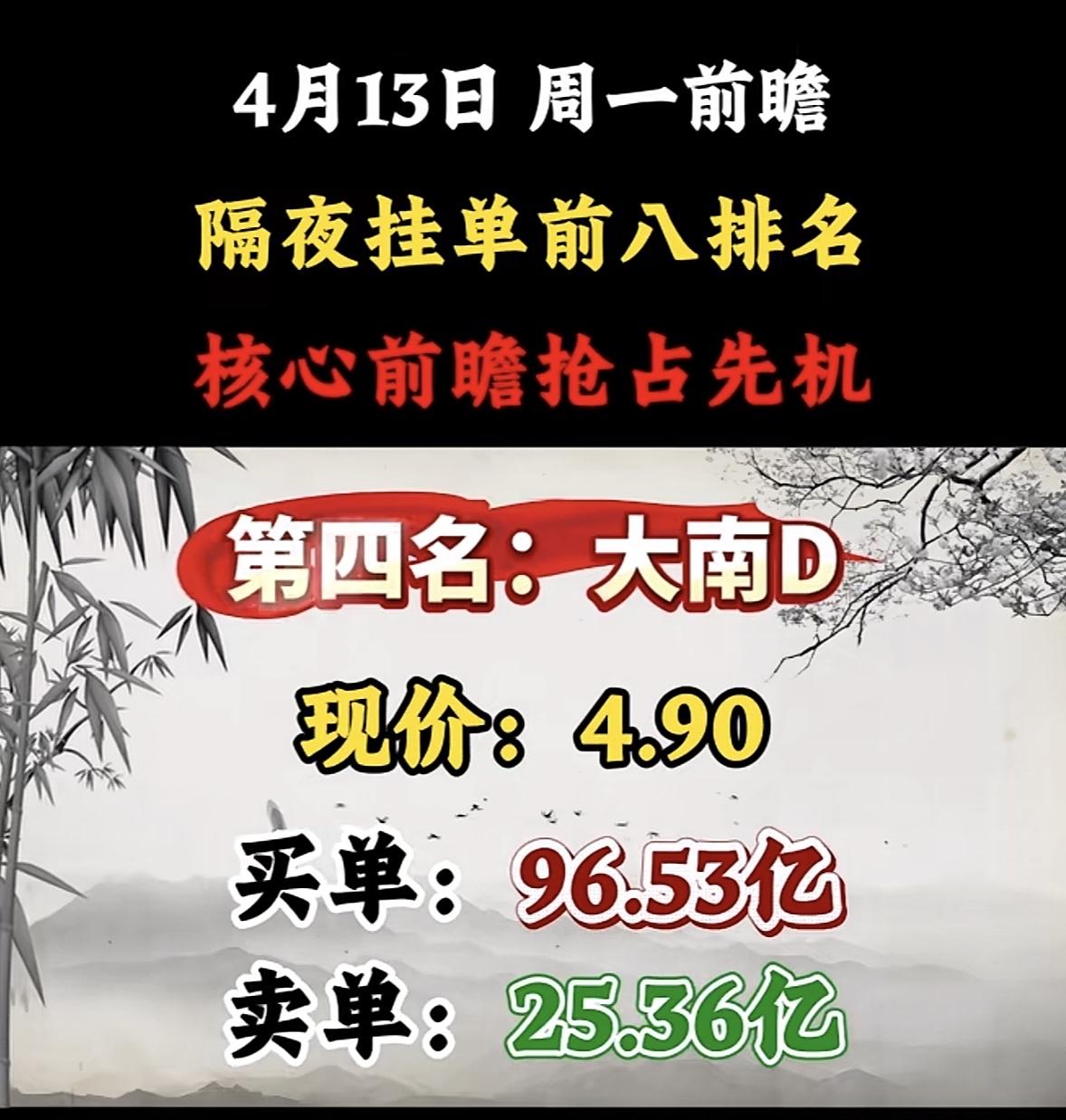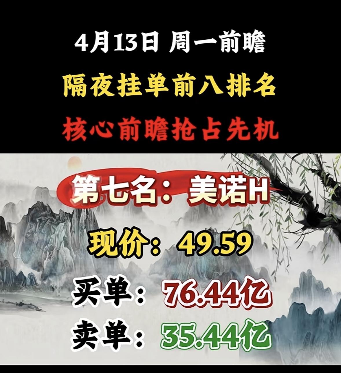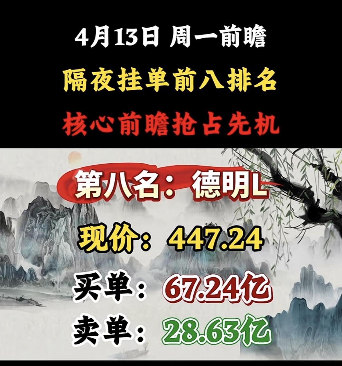 4月13日周一暗盘隔夜挂单排行榜揭晓