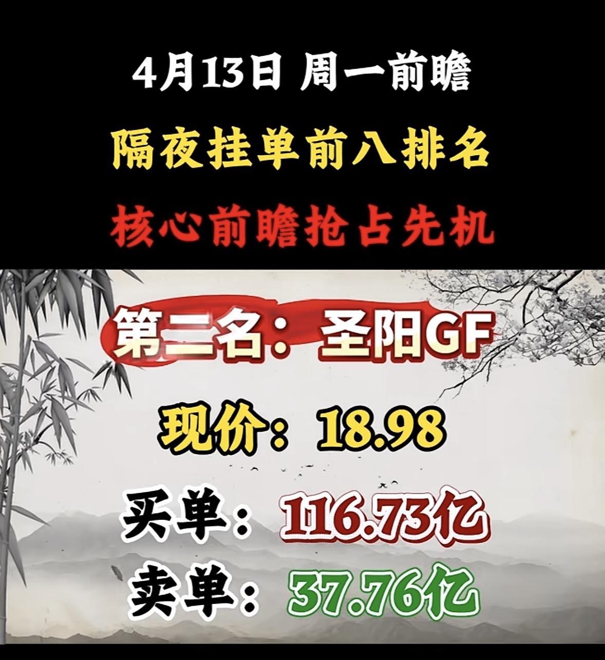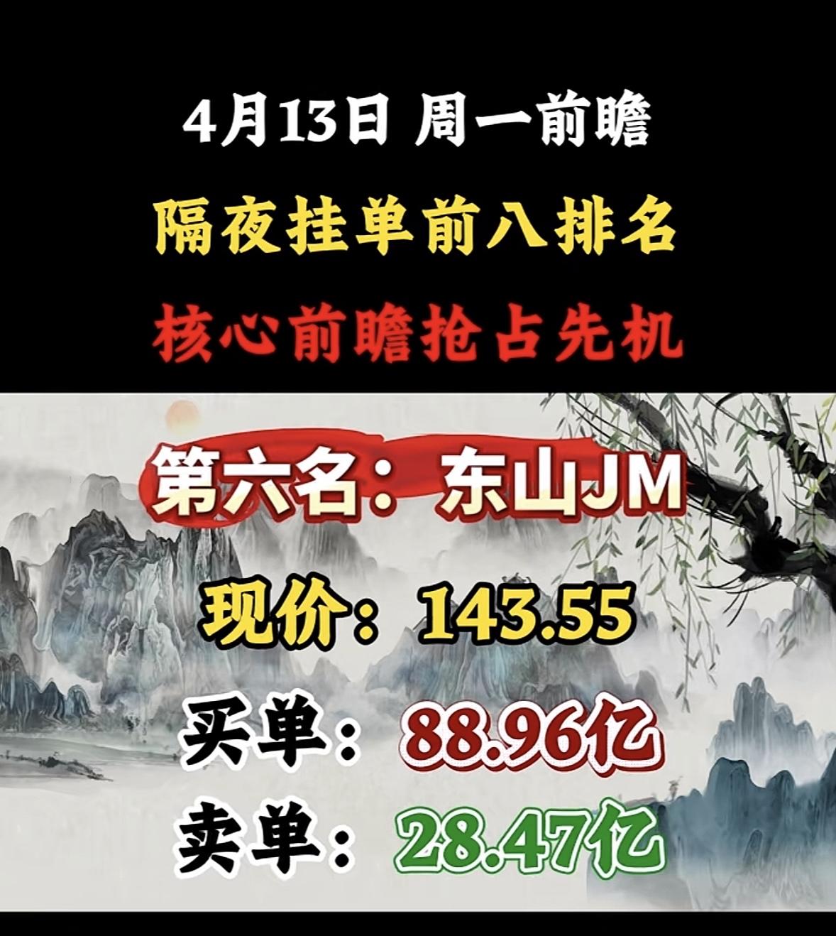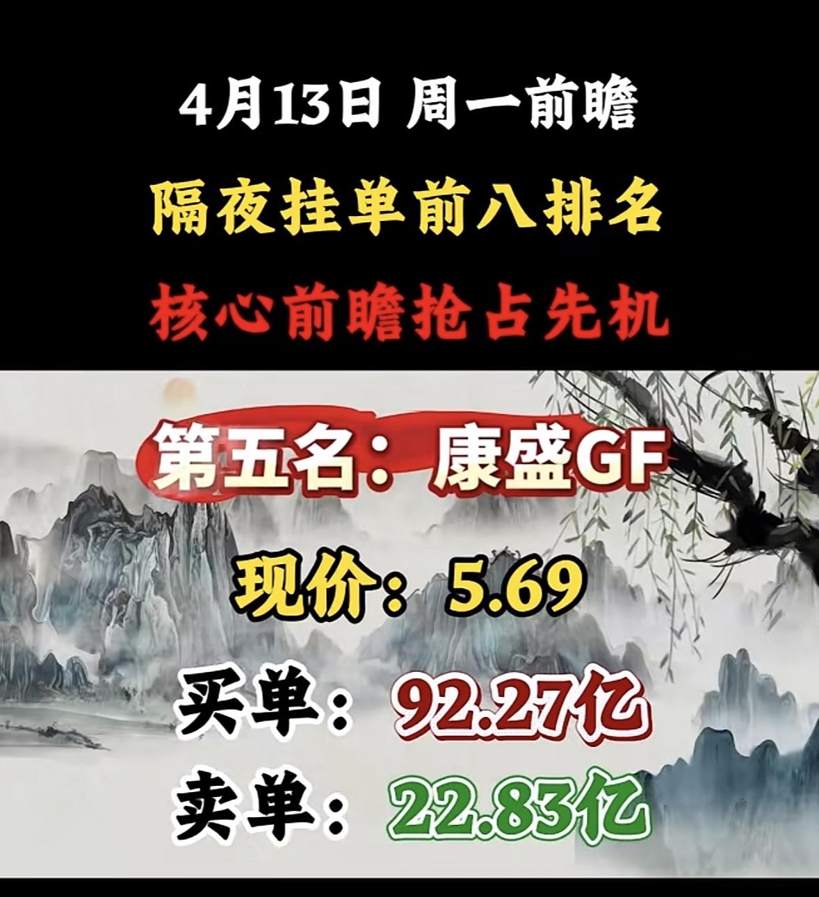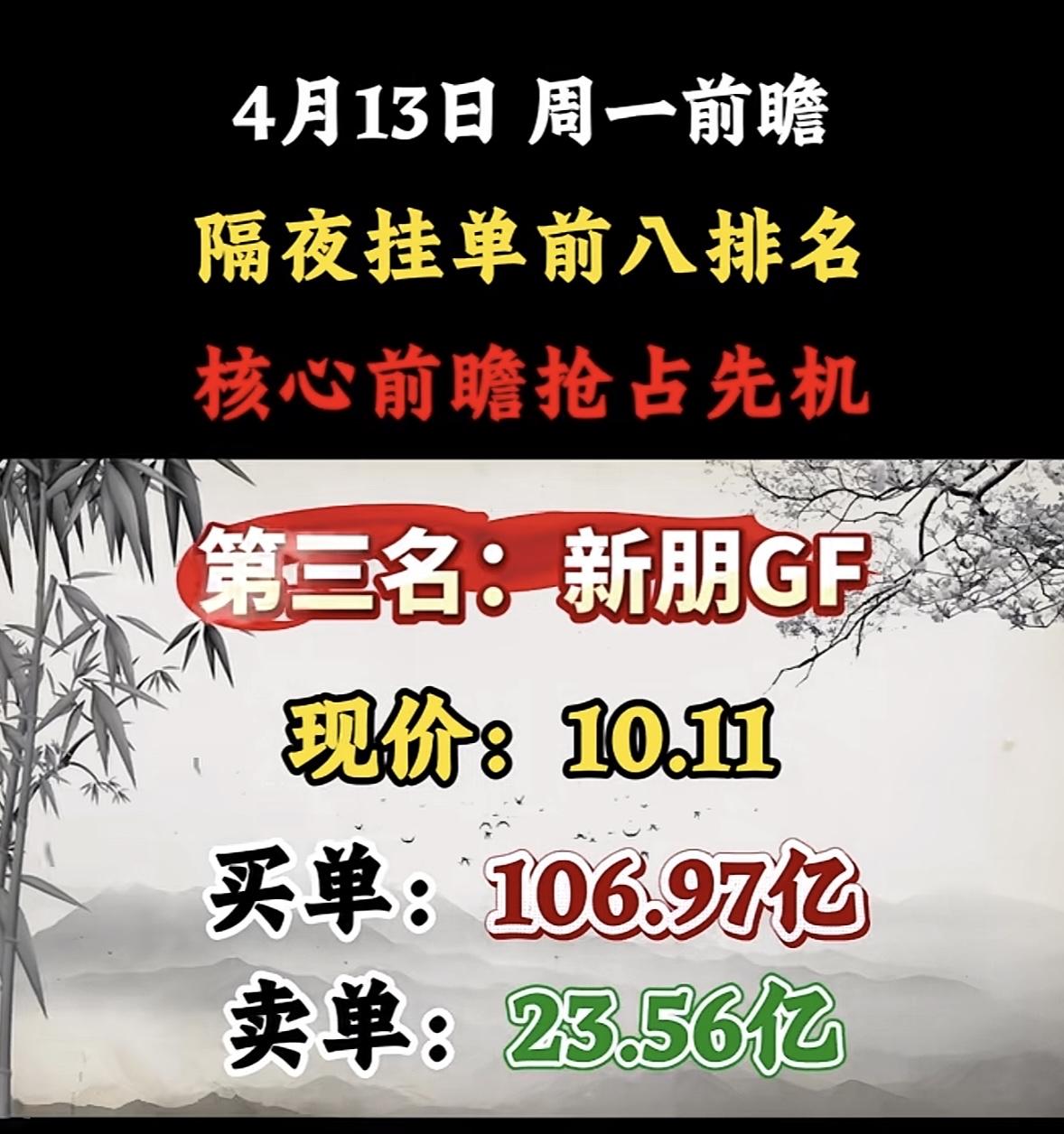 4月13日周一暗盘隔夜挂单排行榜揭晓