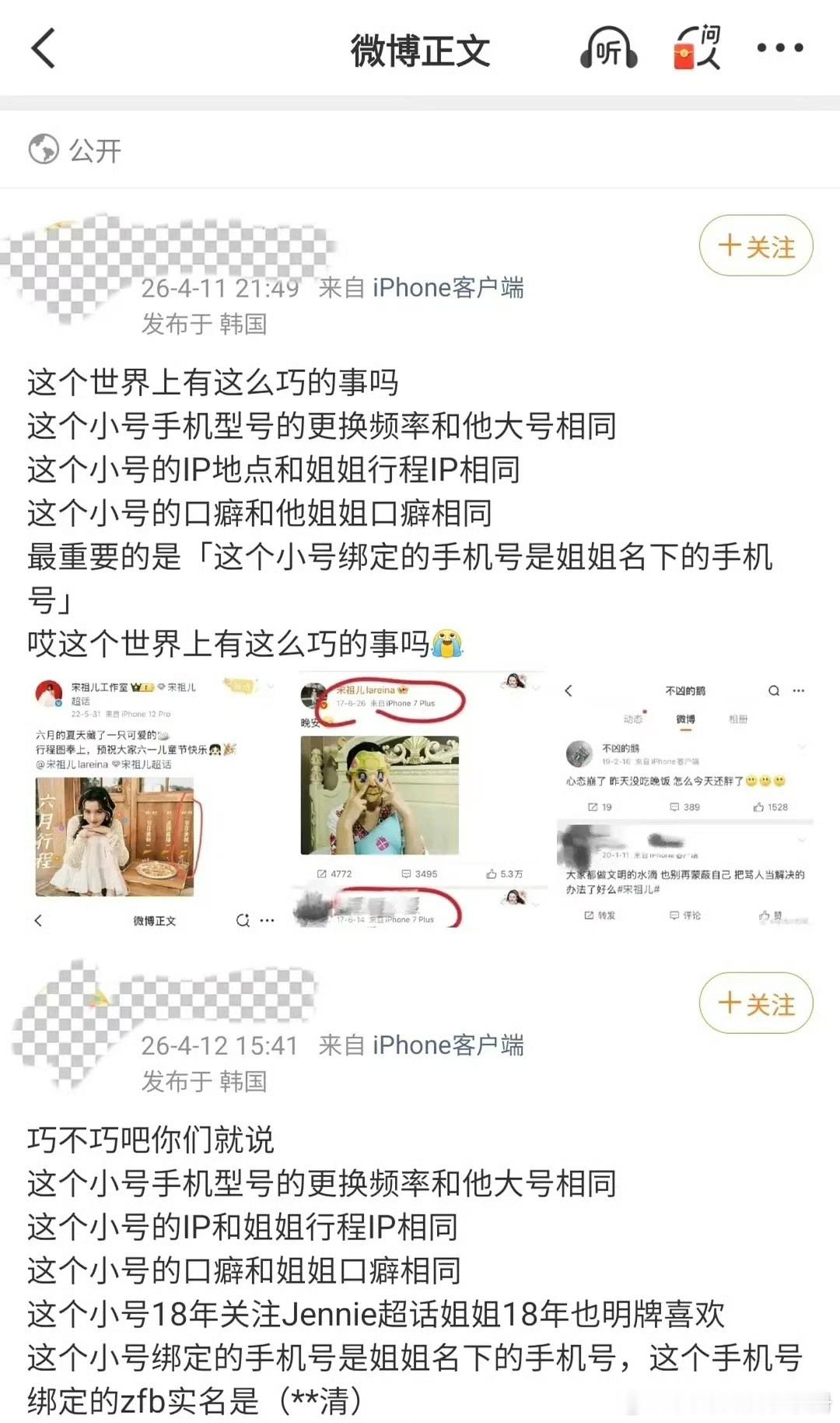 🍉疑似宋祖儿小号被扒,两个账号手机的型号一致、更换地点一致、口癖也很像,该账号关注了宋祖儿 刘宇宁CP超话,阮经天超话随后宋祖儿粉丝澄清账号是假的,宋祖儿16年还没上大学,本人也不喜欢吃榴莲,和账号提到的生活细节不一致,你怎么看?疑似宋祖儿小号