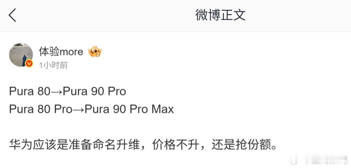 博主体验 more 在微博透露,华为应该是准备命名升维,价格不升、还是抢份额。
