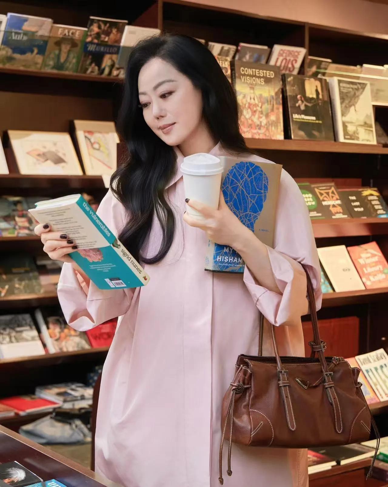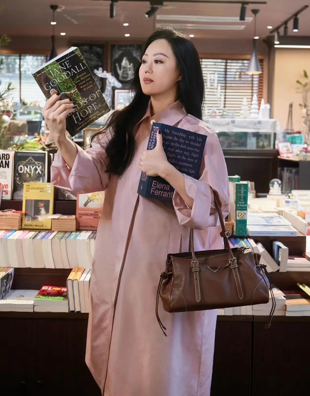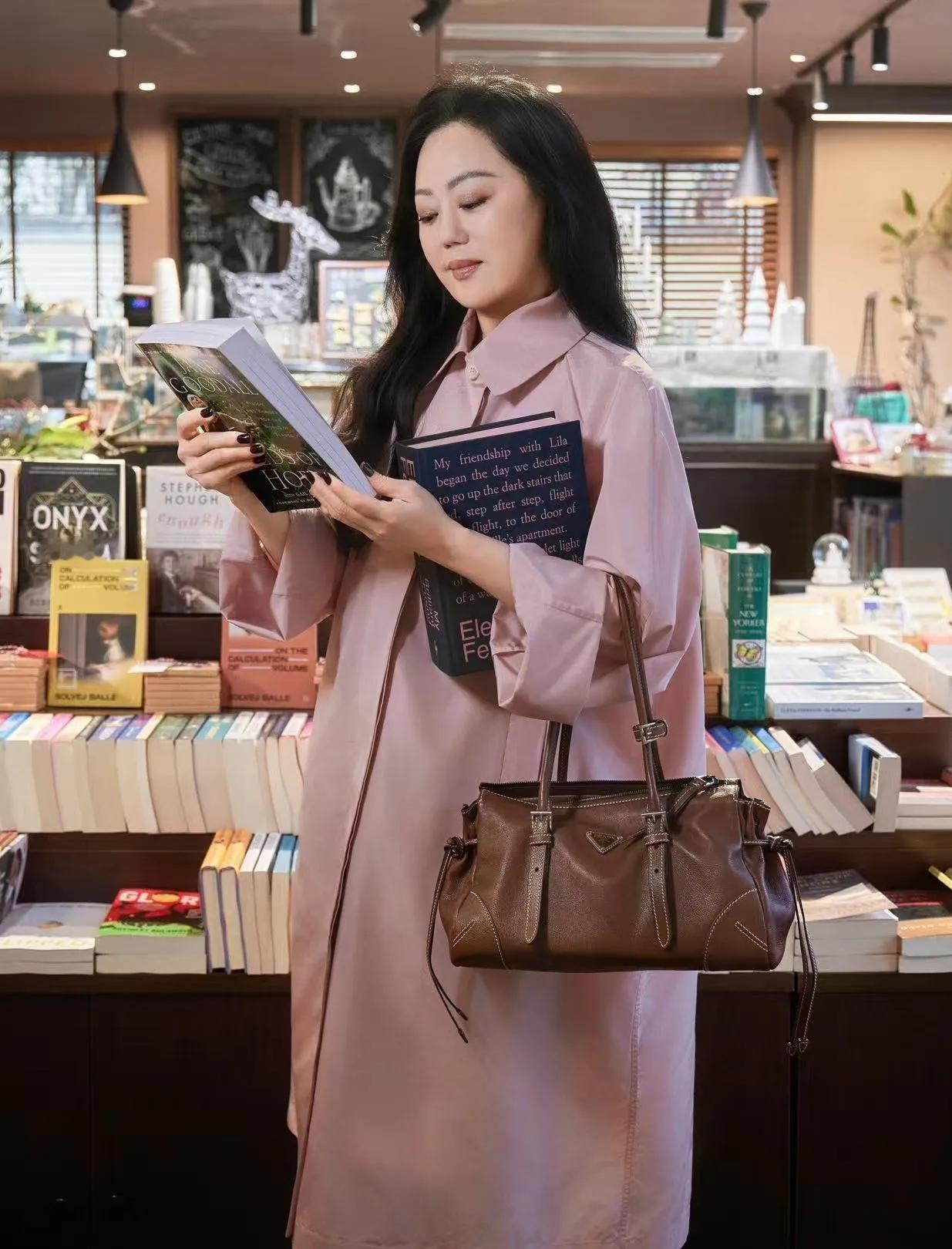 搭配棕色系包包,书卷气拉满,完全没有大妈味,优雅永不过时!