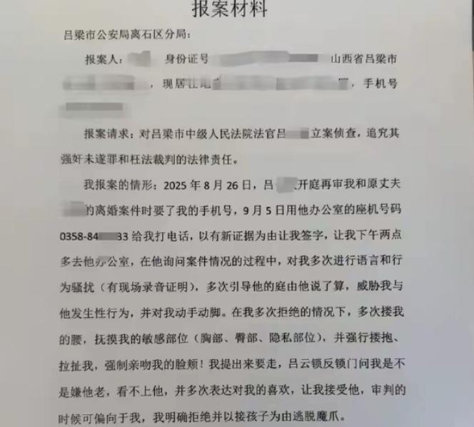 山西吕梁的渠女士举报吕梁中院法官吕云锁猥亵 ,长达 7 个月都没有官方受理,如果