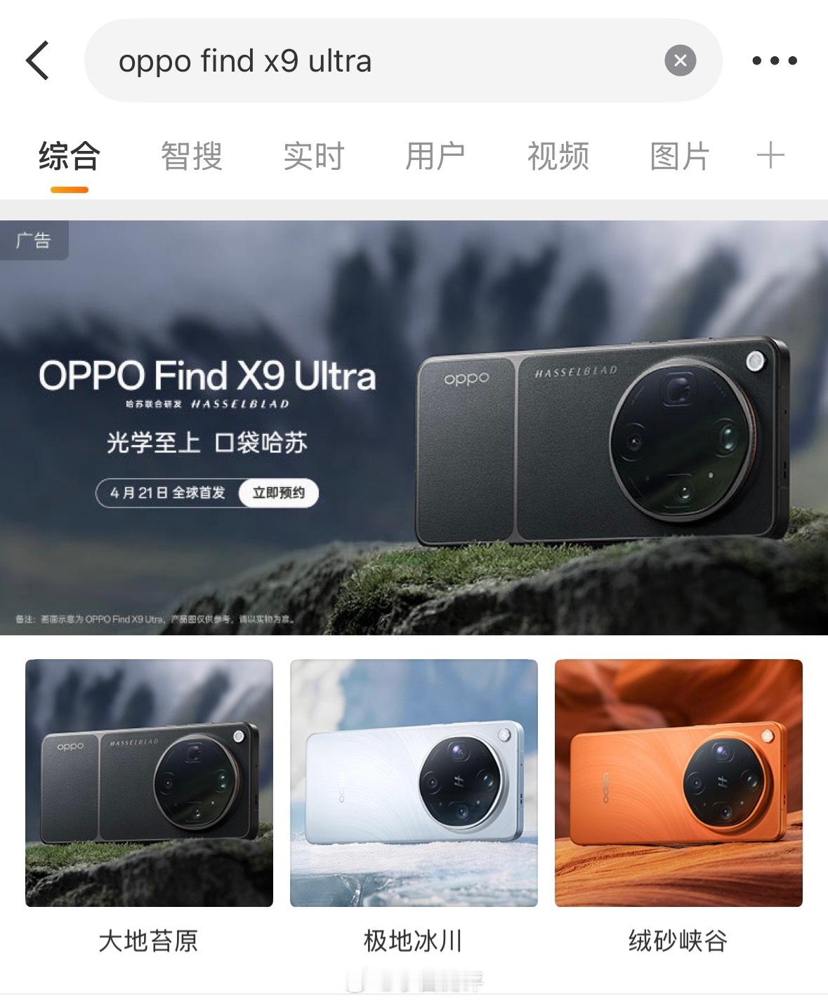 微博页面抢跑OPPO Find X9 Ultra外观大地苔原·铜灰色拼接极地冰川·白色绒砂峡谷·橙色这外观如何?