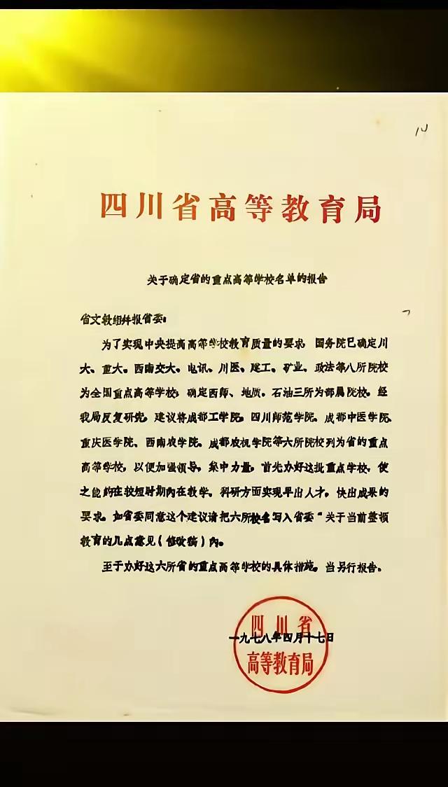 我这两天刚好看到一份四川省属重点学校的资料。其中一些学校几十年都没有进入211,更不用说985了。