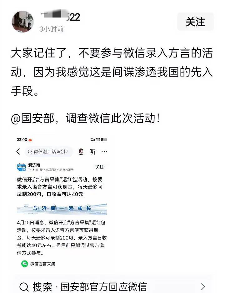 和平年代觉得是趣味文化,可一旦到了特殊时期,境外势力、别有用心之人,收集齐全各地方言资料,通过AI快速建模识别,就能轻松听懂对话、伪装渗透、监听信息,相当于直接把我们的“密码本”拱手让人!