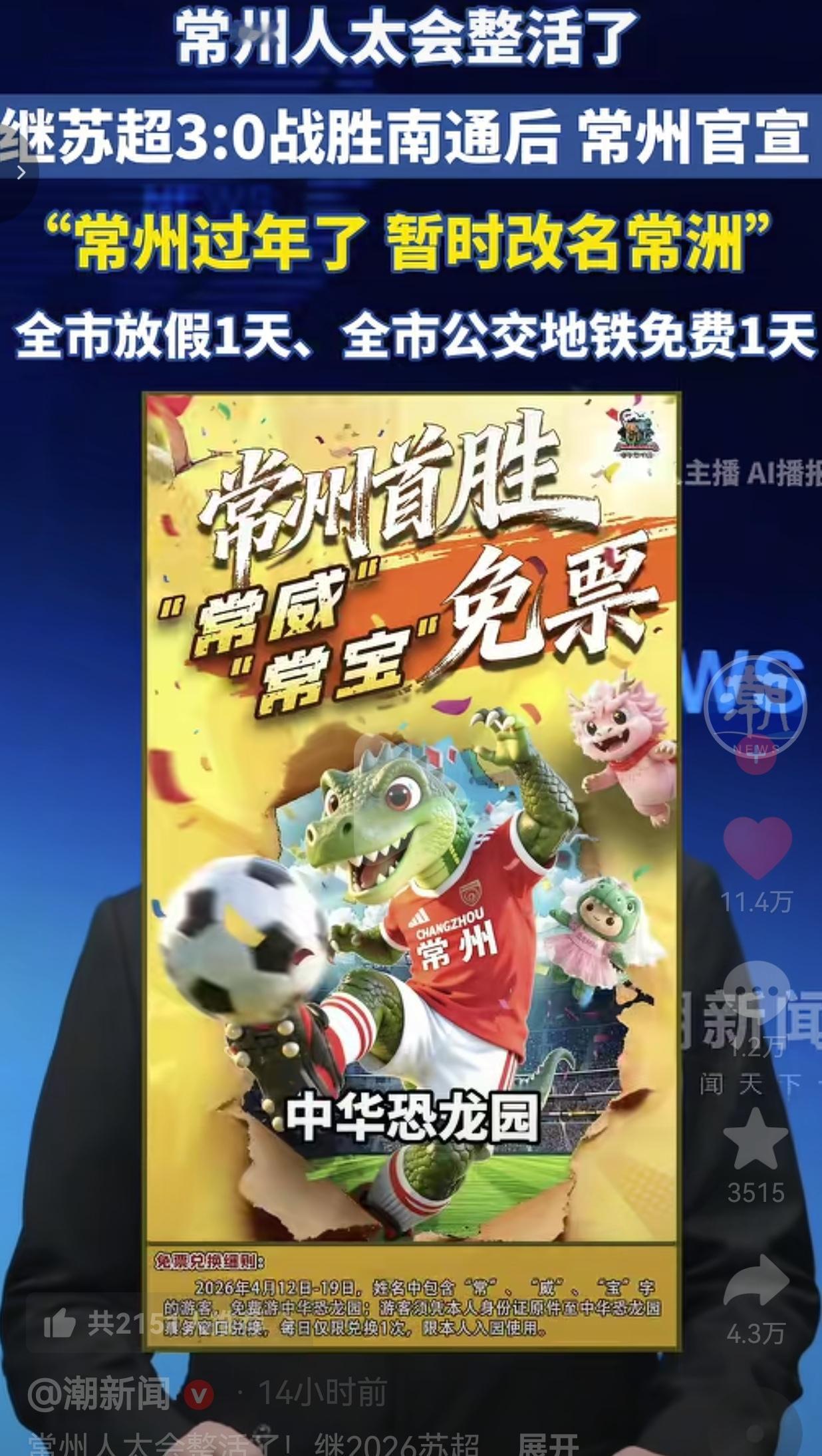 说实话,我看完直接羡慕到不行!常州这波,赢球不是终点,是全城狂欢的起点!官方不端着,跟市民一起玩梗、一起庆祝,放假、免费、福利,全是实打实的实惠!