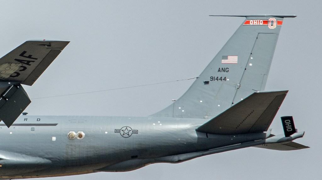 一架美军“麻子”脸KC-135抵达英国。