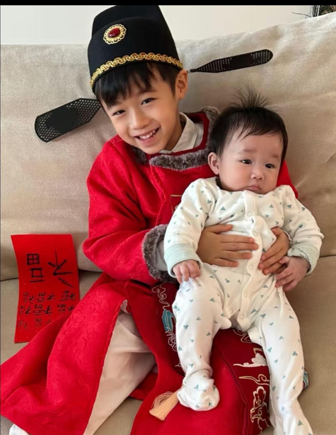 新生儿取名Kuderson,眼睛圆溜溜的像妈妈,哥哥倒像极了爸爸。