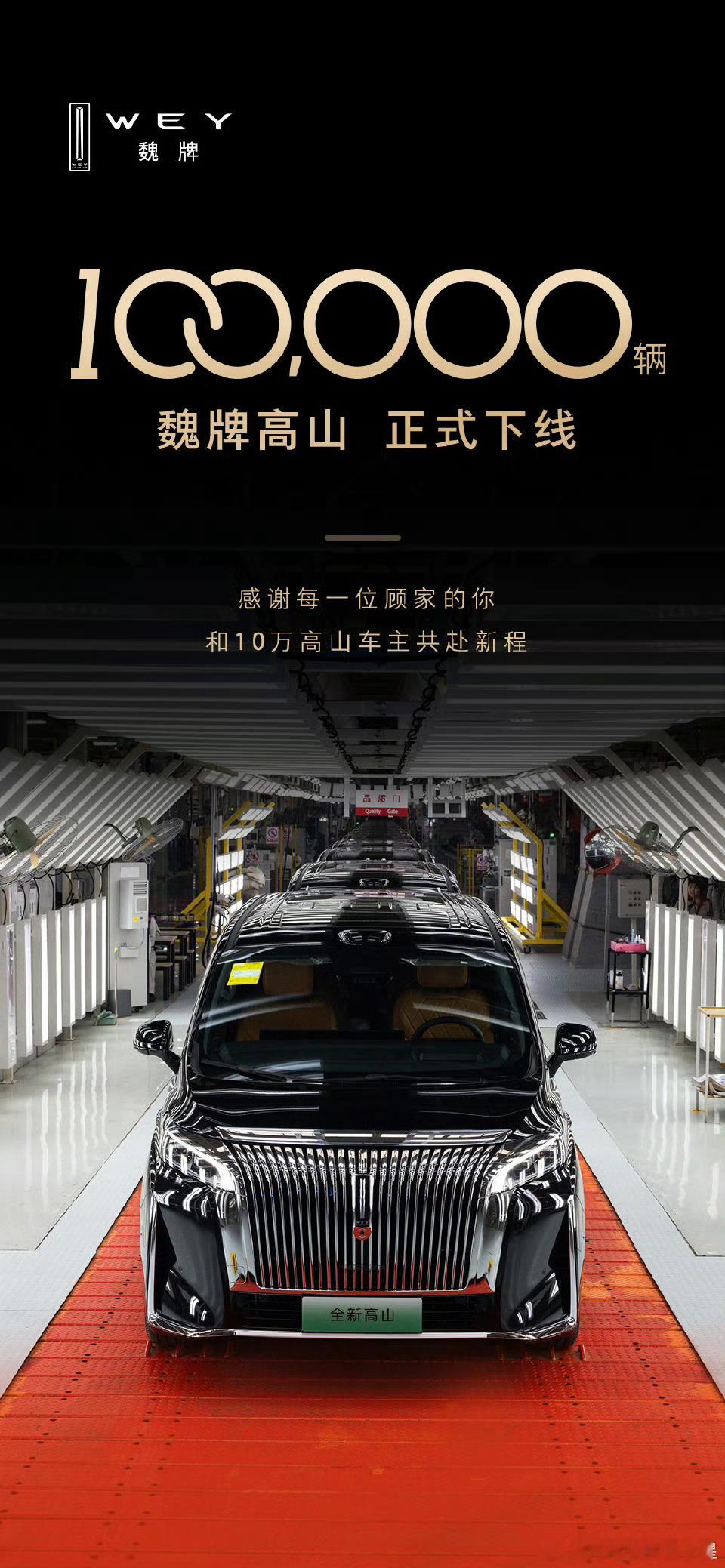 10万辆下线庆典:借势楚超揭幕战,魏牌高山同步庆祝第10万台整车下线,将销量里程碑与赛事热度绑定,强化“冠军MPV”形象。