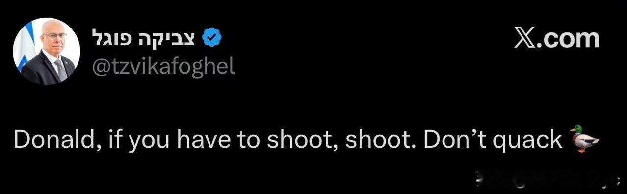 以色列议会国家安全委员会主席福格尔喊话川普: