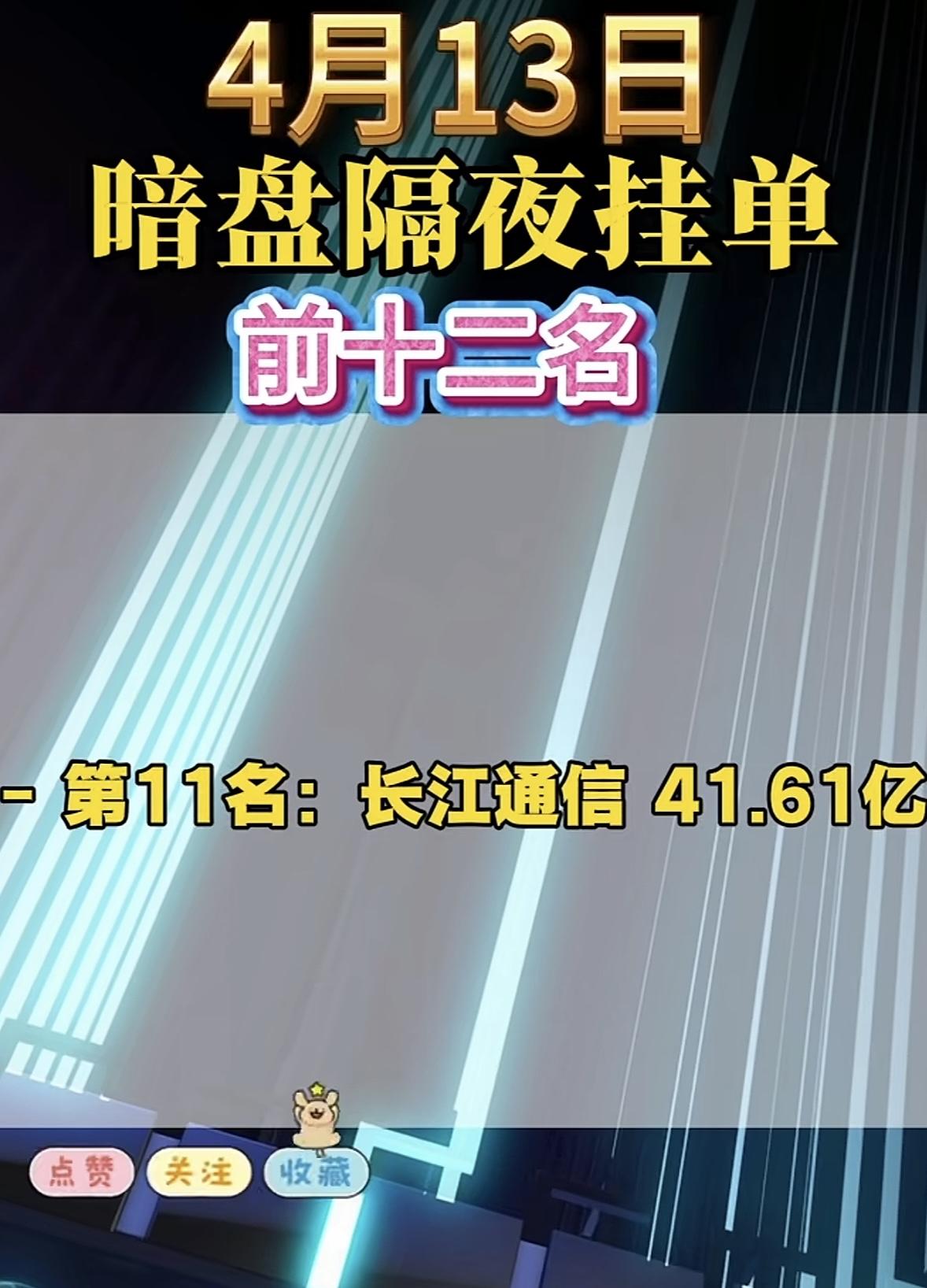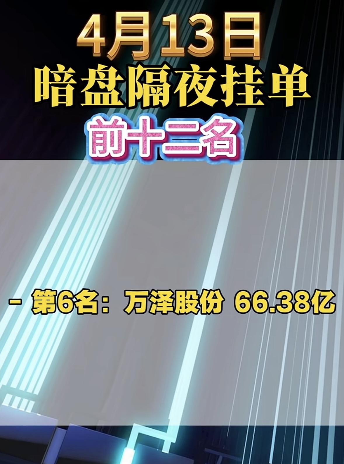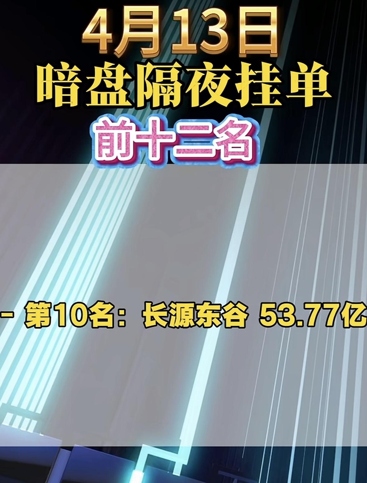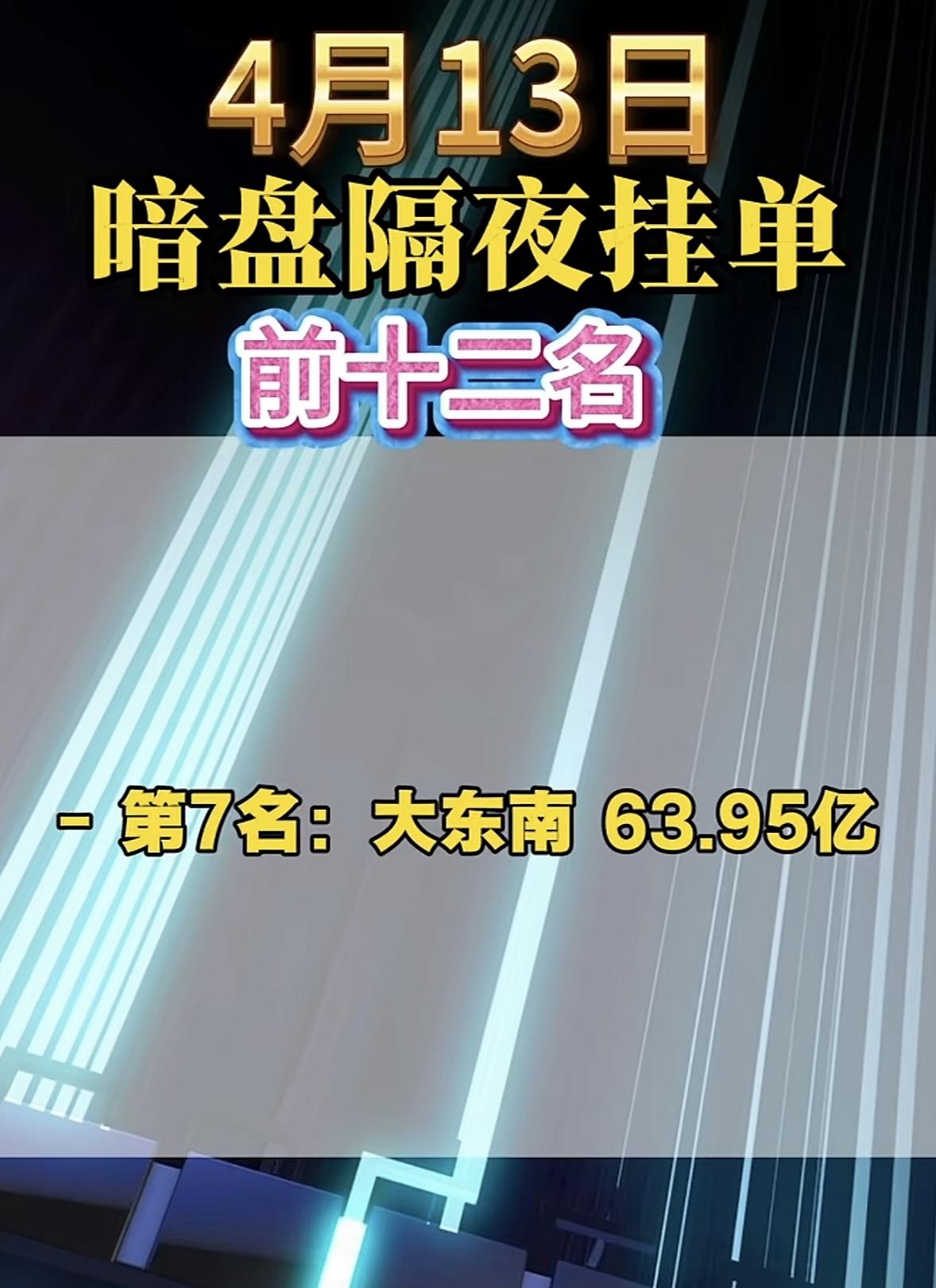 4月13日周一暗盘隔夜挂单榜前十二名出炉。