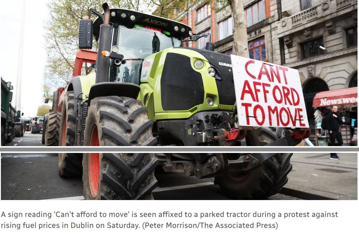 爱尔兰油荒,爆发严重抗议 爱尔兰总理迈克尔·马丁周日表示,政府将提供新的燃油税减