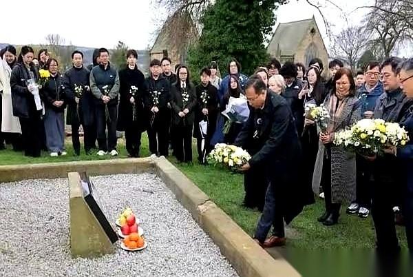 现场上百人,领事、华人、留学生,没人说话,空气里只有风吹过的声音。花篮的缎带被吹得轻轻飘动。