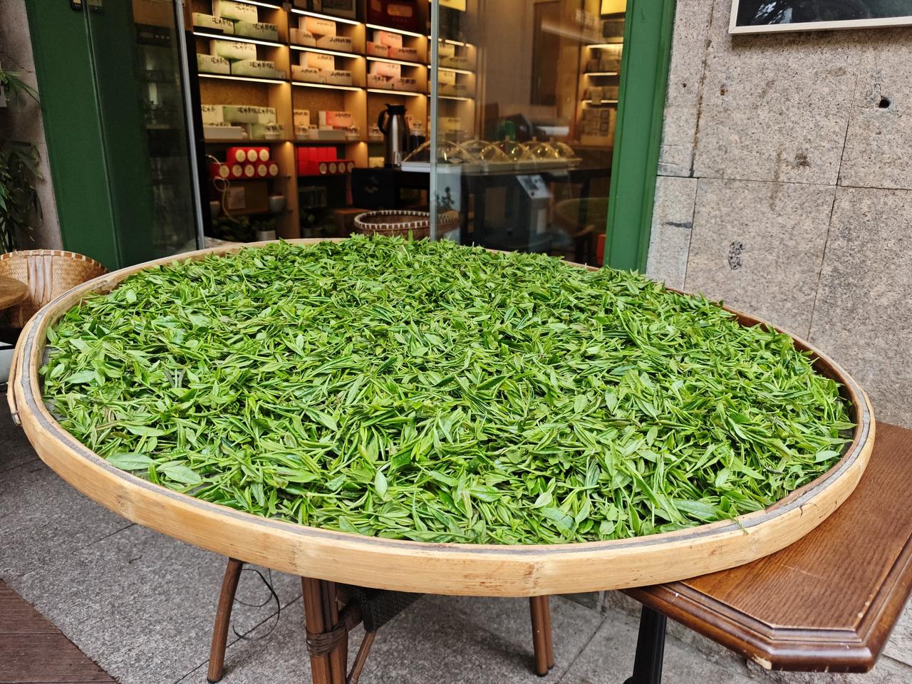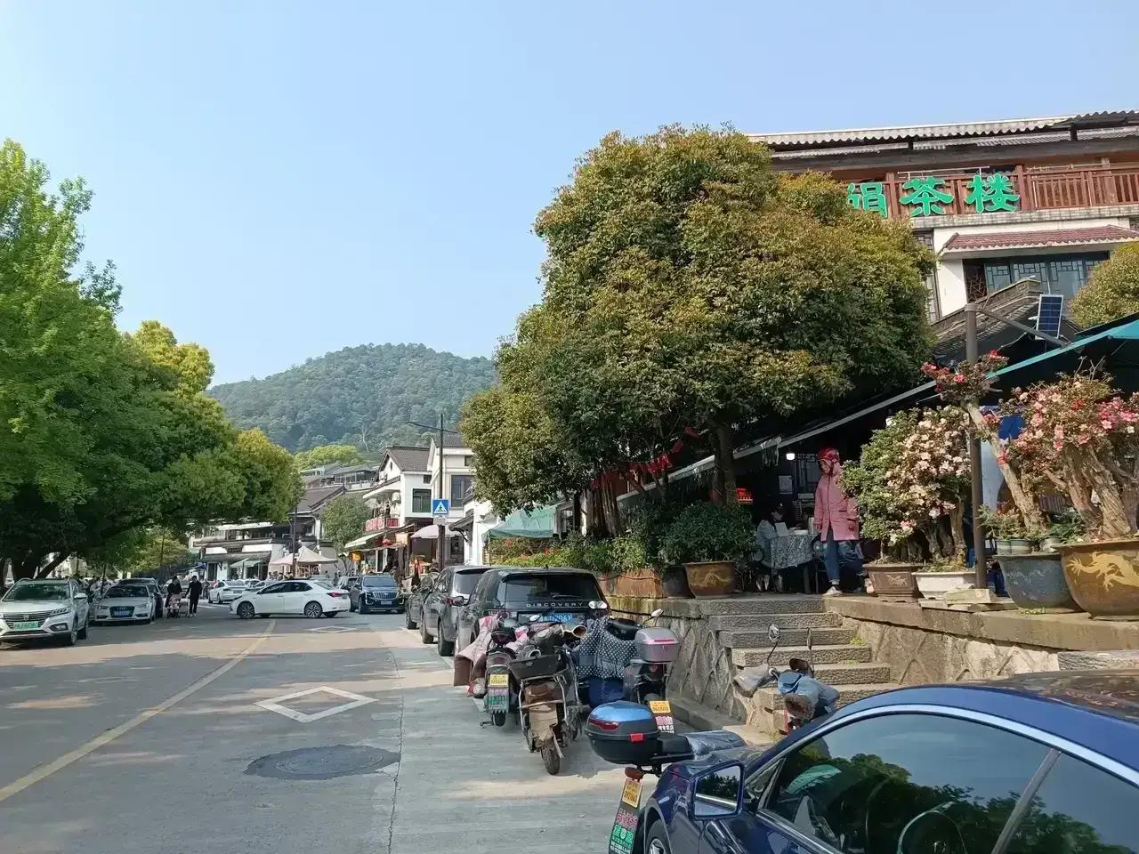 梅家坞梵村道路两旁有很多的茶馆和小餐馆,双休日来这里游玩的人们喜欢喝上一杯龙井茶在品尝一下茶点心,坐在风景如画的层层叠叠的茶园面前心情不要太好。
