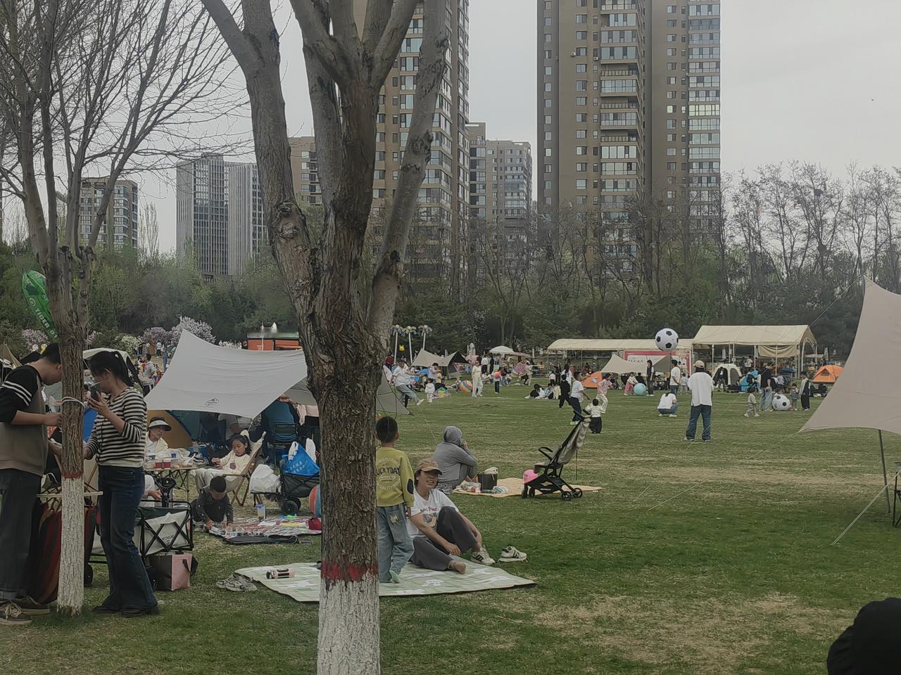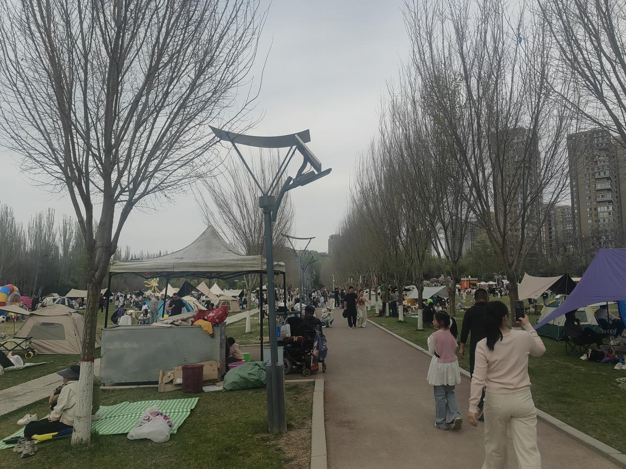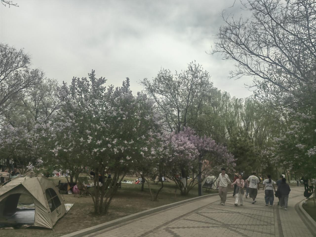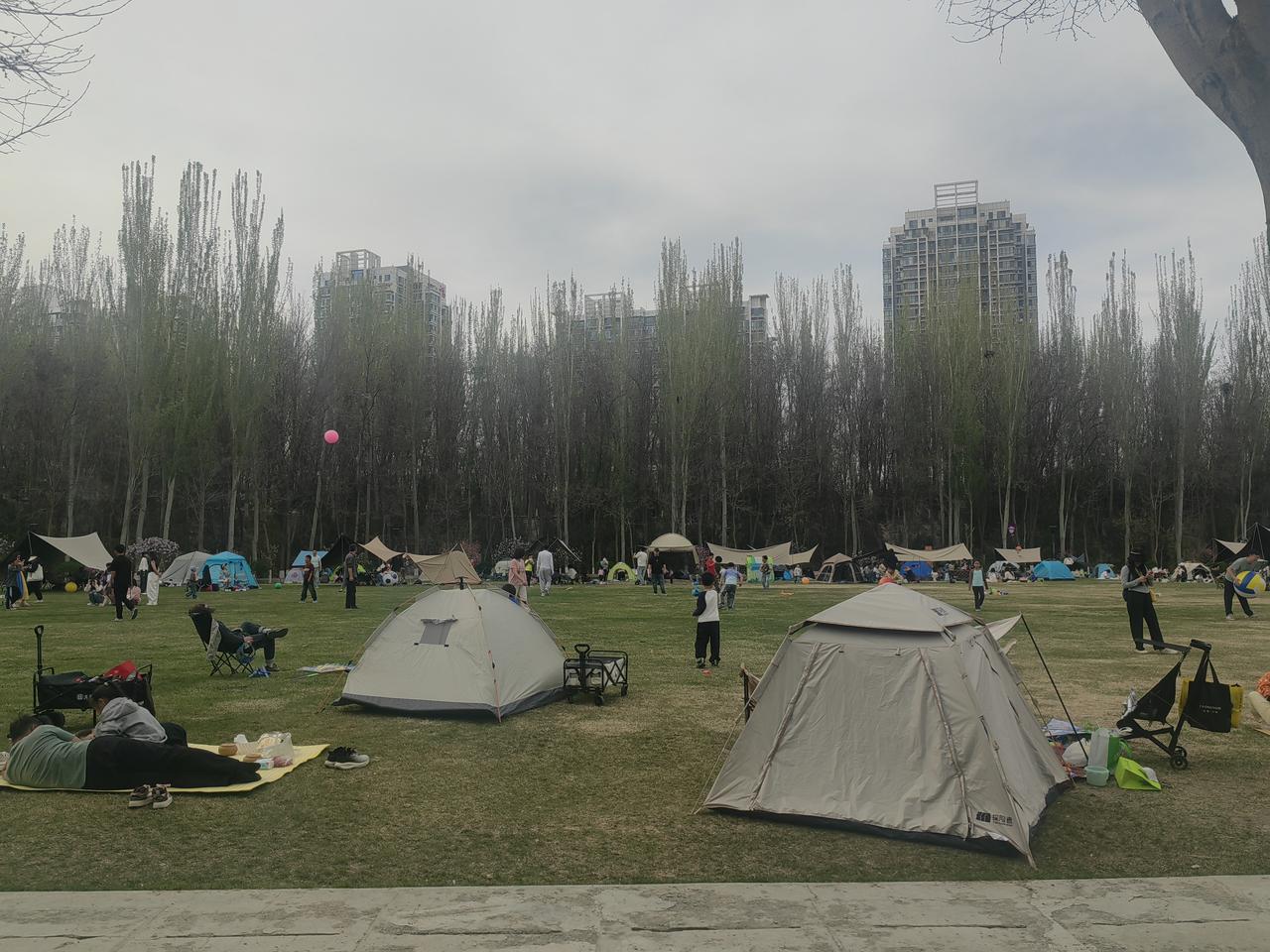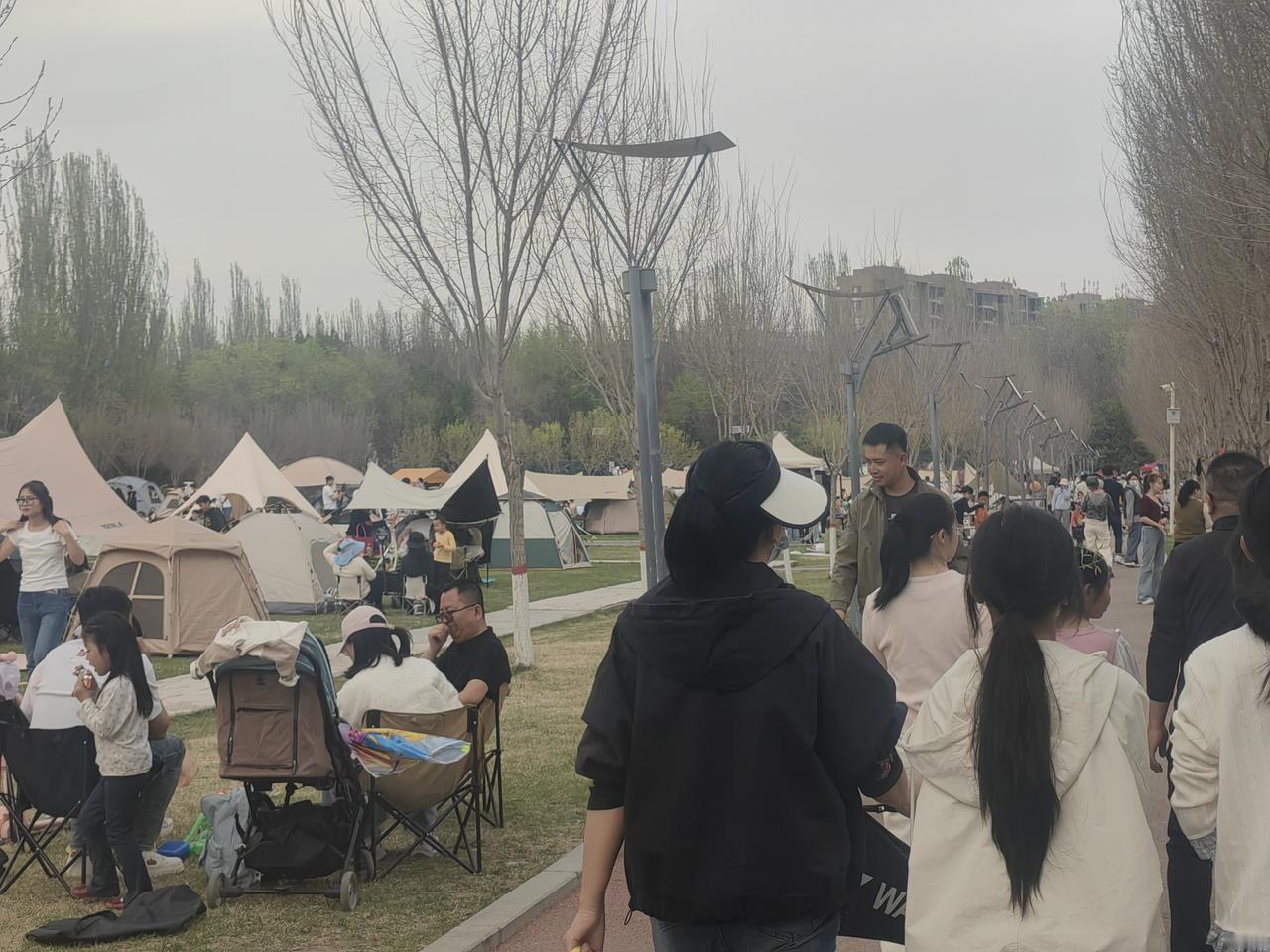 周末去银川森林公园,好家伙,到处都是拖家带口来露营的人。大家都在享受春日好时光,有锻炼的,有赏花的,热闹得很。