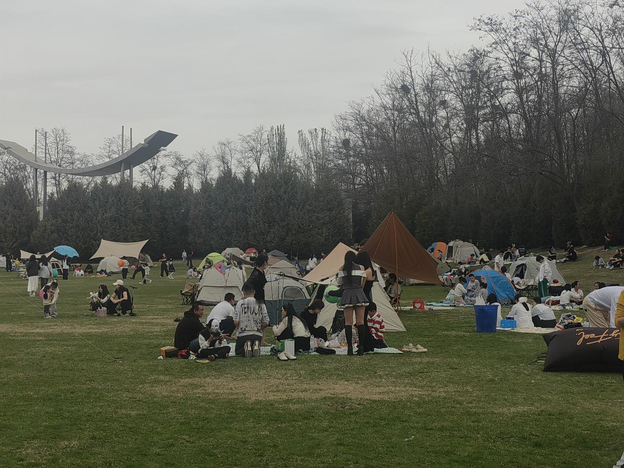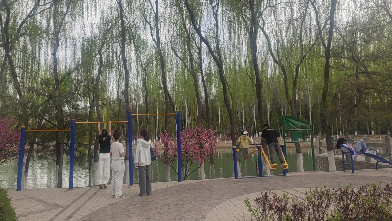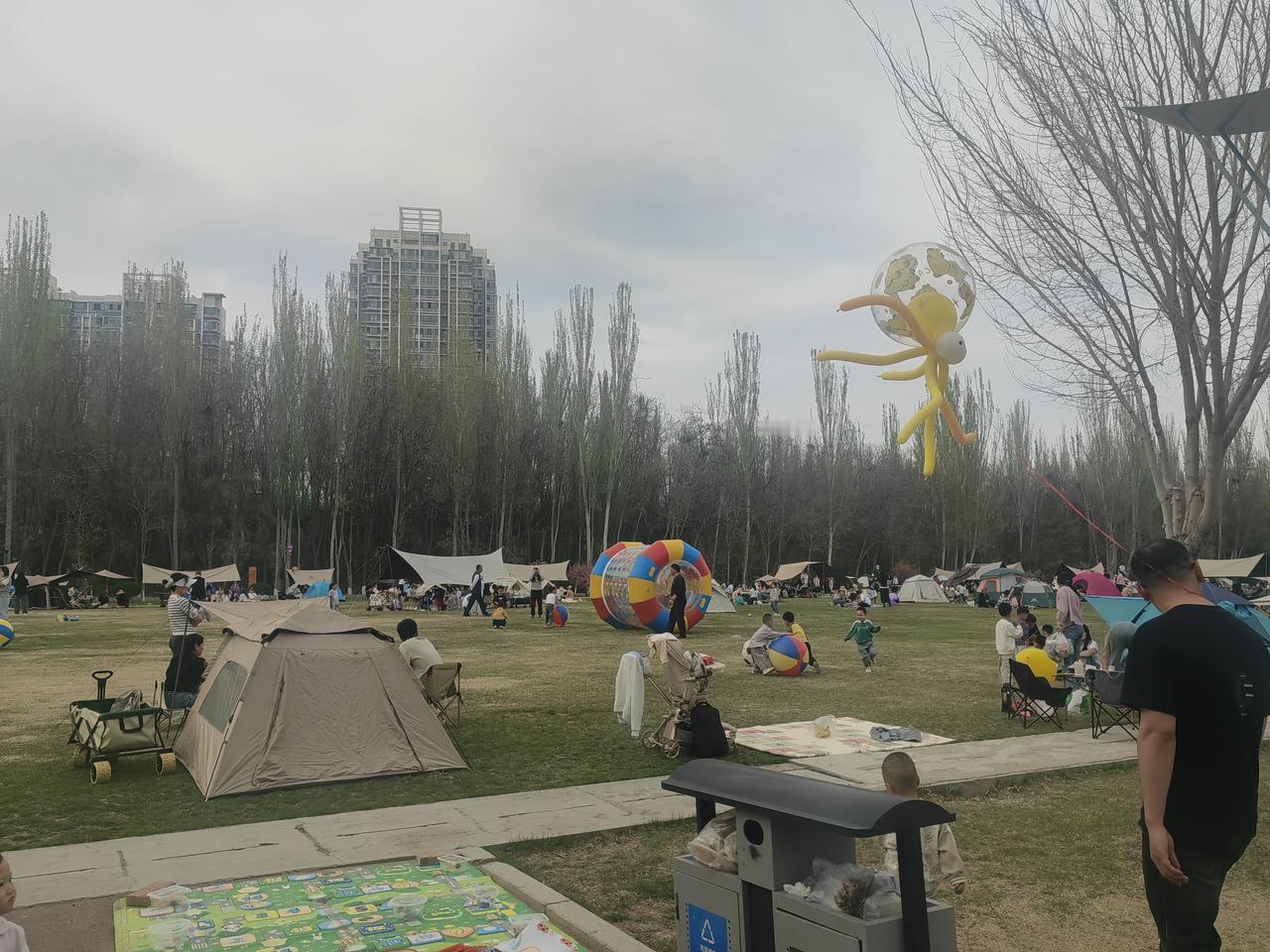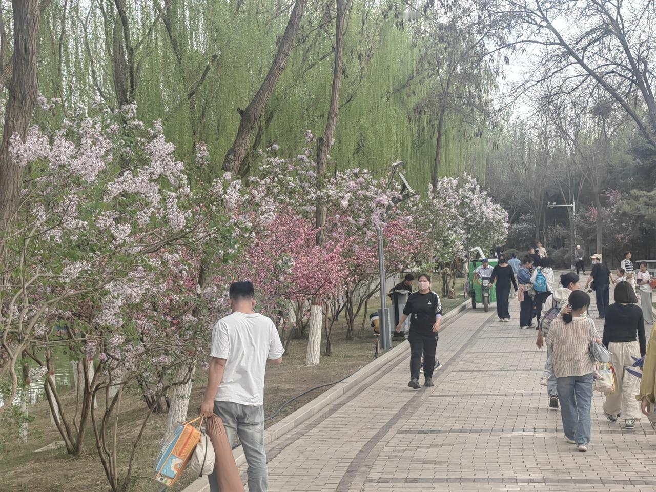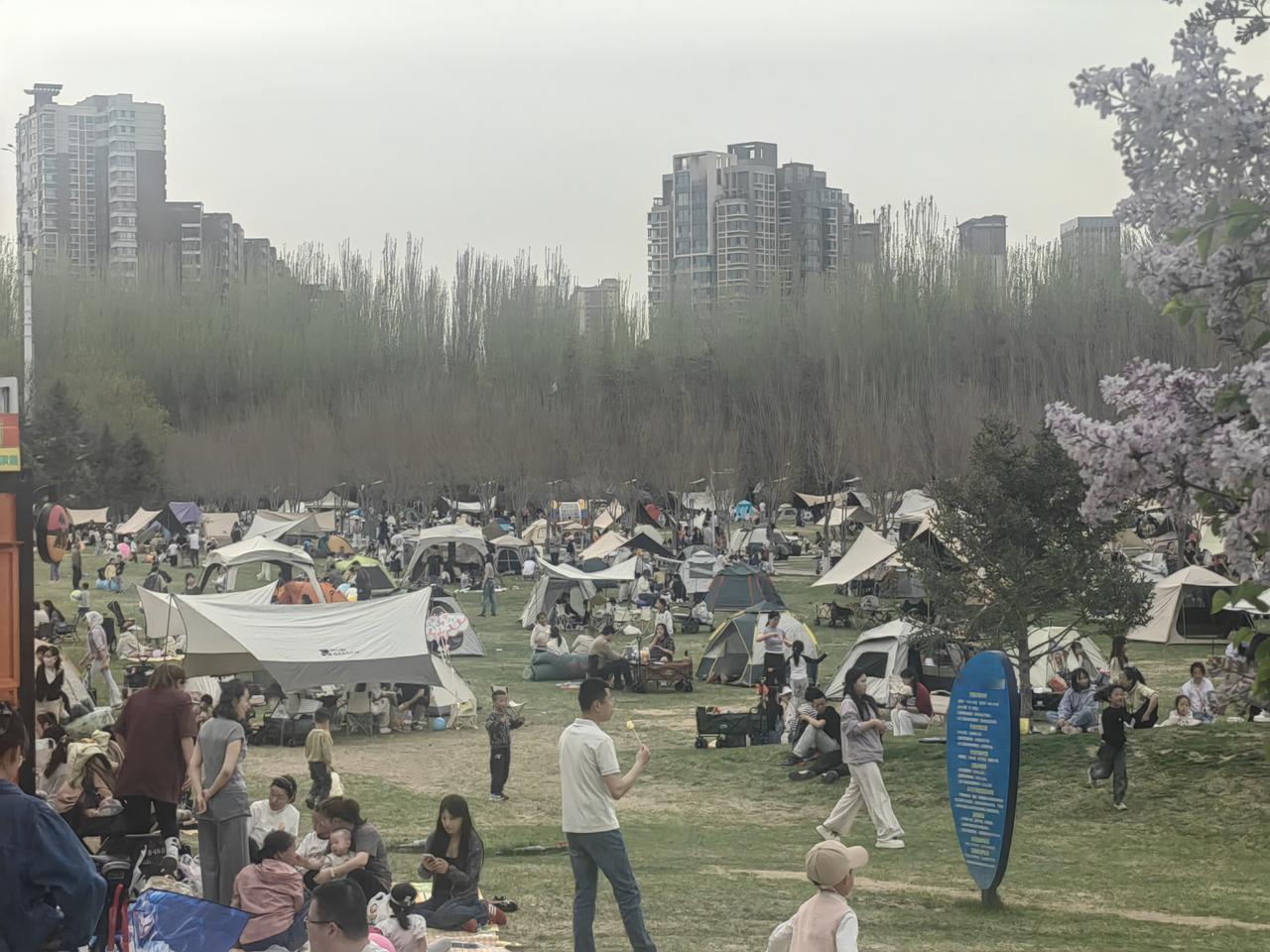 周末去银川森林公园,好家伙,到处都是拖家带口来露营的人。大家都在享受春日好时光,有锻炼的,有赏花的,热闹得很。