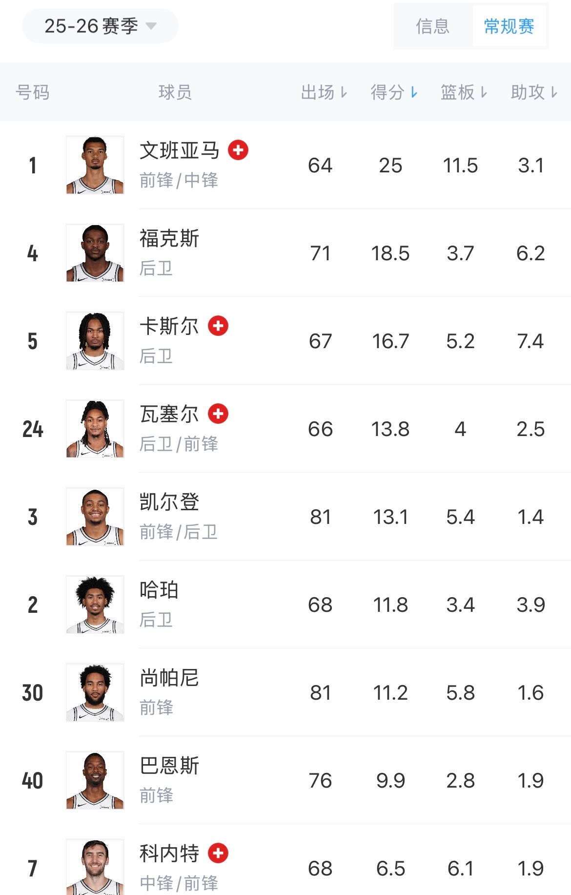 如果巴恩斯今天能拿到17分,马刺将是历史上首支单赛季有8名球员场均得分上双的球队♨️