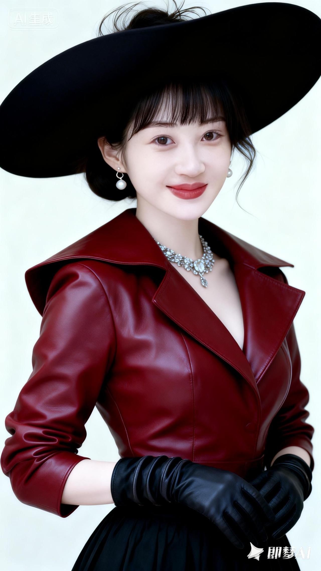 复古红皮外套搭配黑色礼帽,优雅气质满分!👗👒
