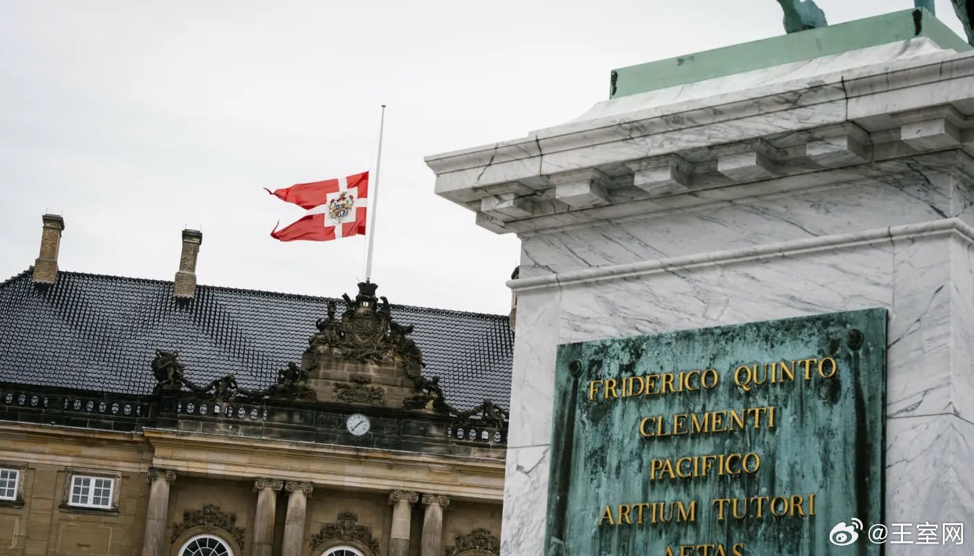 丹麦王室 🇩🇰阿马林堡宫所有的宫殿,克里斯蒂安七世宫、克里斯蒂安八世宫、克里斯蒂安九世宫和腓特烈八世宫都降半旗为国丈约翰·达尔格利什·唐纳森去世哀悼。世界各国王室