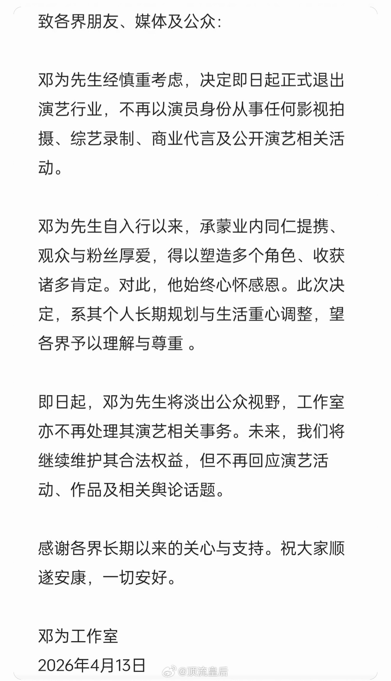 邓为粉丝脱粉小作文,长期不进组不营业,确实折磨粉丝。