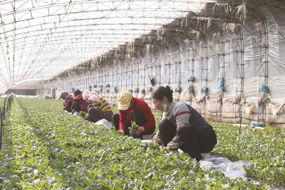 图为滦南县坨里镇艳阳天蔬菜专业种植合作社的工人正在起苗。刘唯清摄