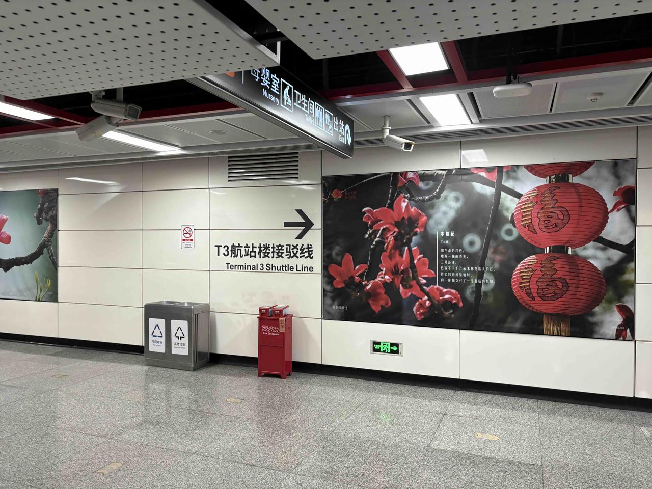 方案三,三号地铁站到了第二航站楼地铁站转乘轻轨,必须上12036买轻轨的票,身份证上车,同样你看不到T1 T2 T3航站楼的标志,是机场南北站,复杂吧。你也可以出地铁站坐循环方式,问题是时间也不好控制。