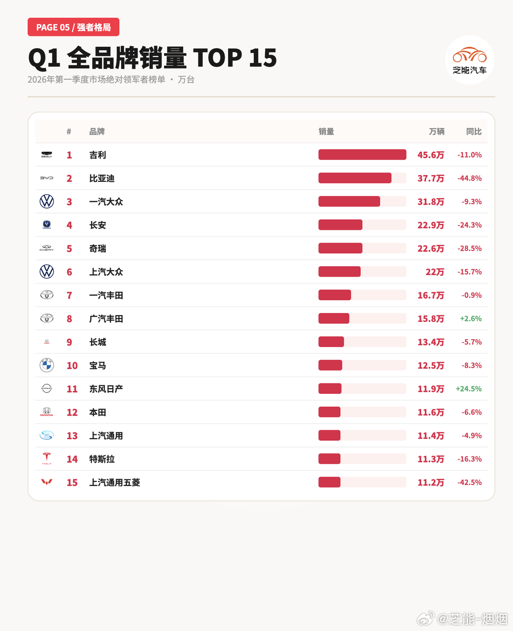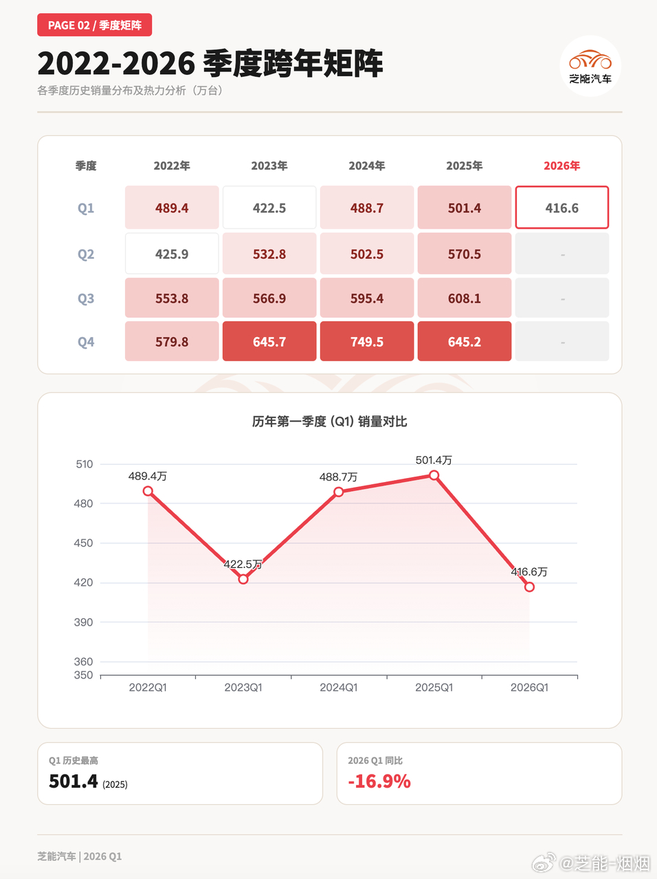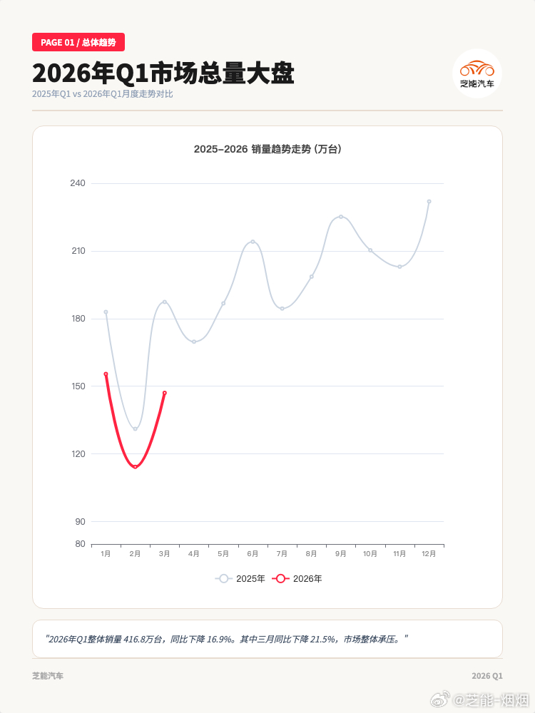 2026 年一季度大家都说汽车行业压力很大,主要是是指国内销量的问题。现在终端数据我们来做个回顾。