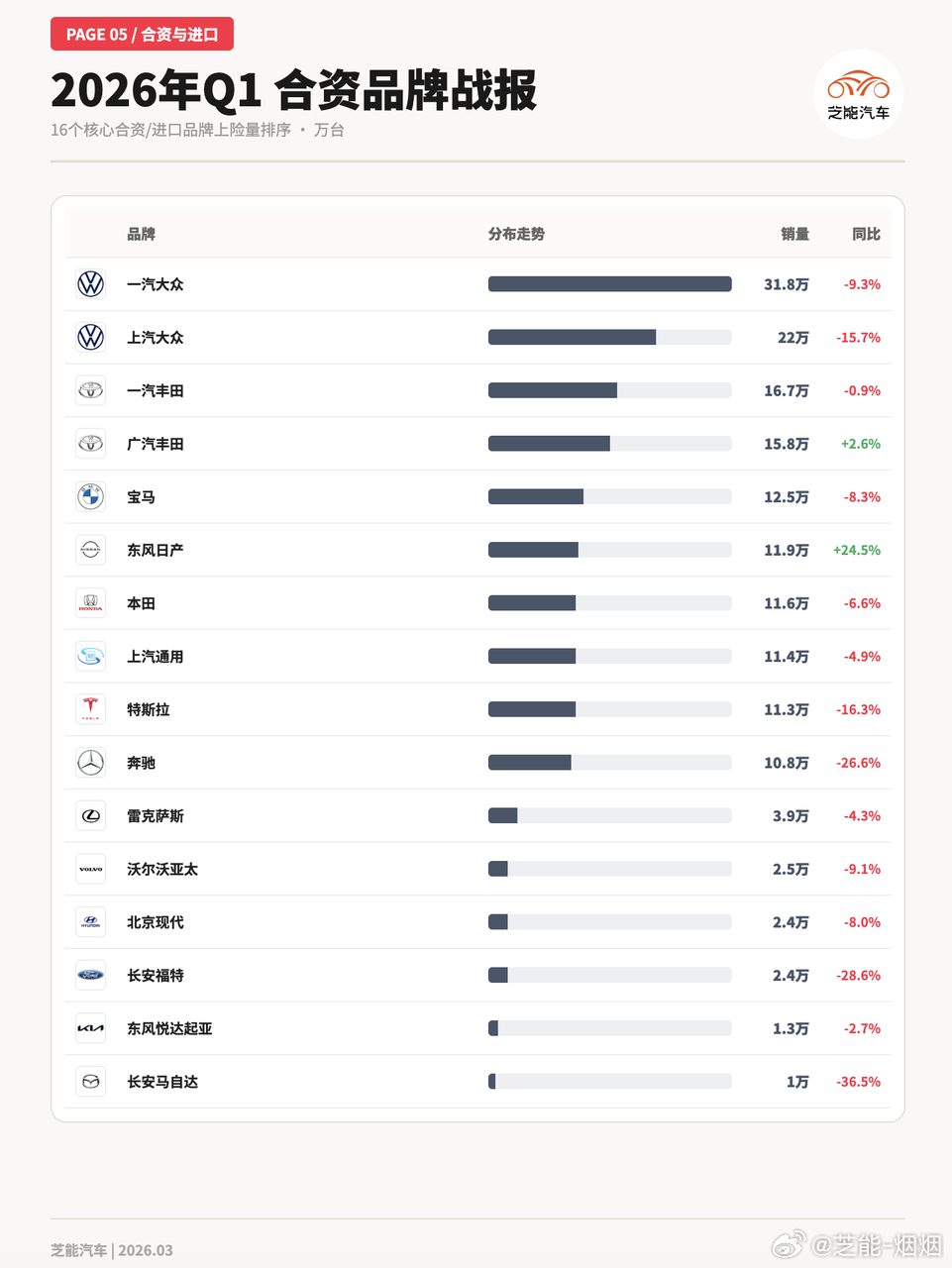一季度对合资品牌的经营,产生了巨大的冲击,走量的目前只有大众+丰田,走合适规模的现在有通用+日产,围绕自己的优势品类,本田还在思考怎么办。