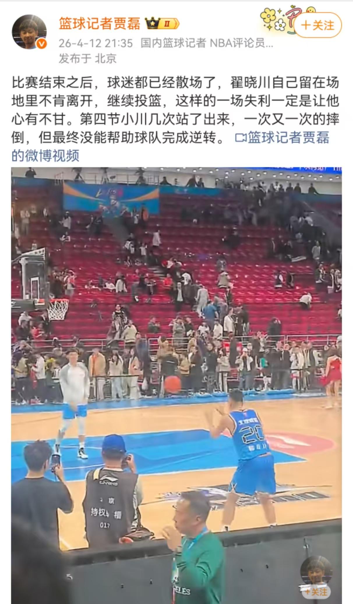 新鲜又搞笑!北京男篮主场输给上海男篮后,翟晓川在赛后加练投篮,范子铭帮助捡球做陪伴!