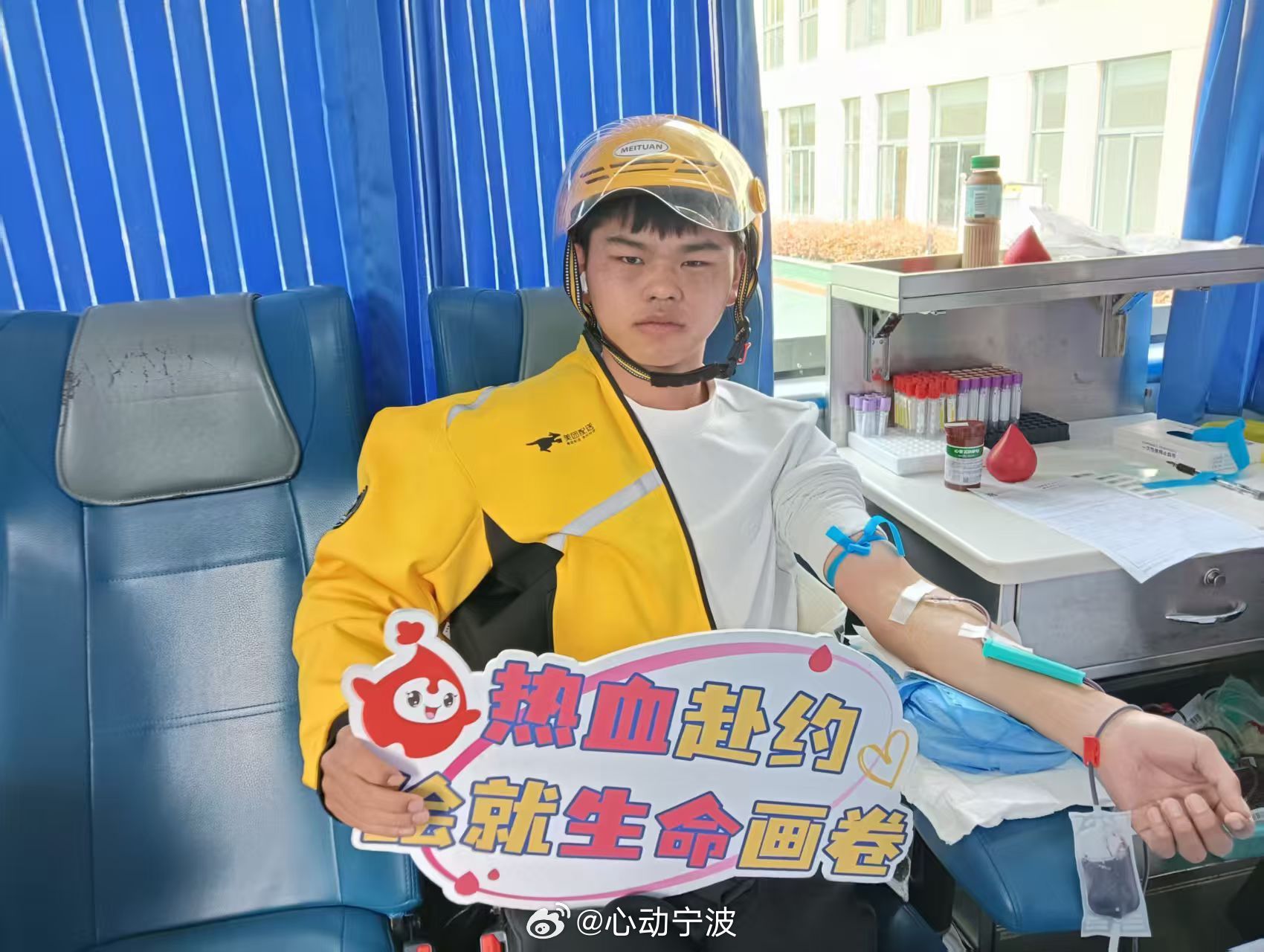 余姚外卖小哥组团献血用热血传递温暖 近日,宁波余姚开展无偿献血活动,30余名外卖骑手组成的蜂侠志愿服务队成为主力。骑手们积极响应号召,报名一天内满员,大家放下配送订单踊跃参与,有序完成献血流程。22岁骑手刘鑫鑫一次性献血400毫升,用行动诠释爱心。本次活动累计献血量超8000毫升,参与者平均年龄不到25岁。这支队伍还常参与巡逻、宣传等公益活动,以热血与担当展现新就业群体的正能量,用热血为生命接力。