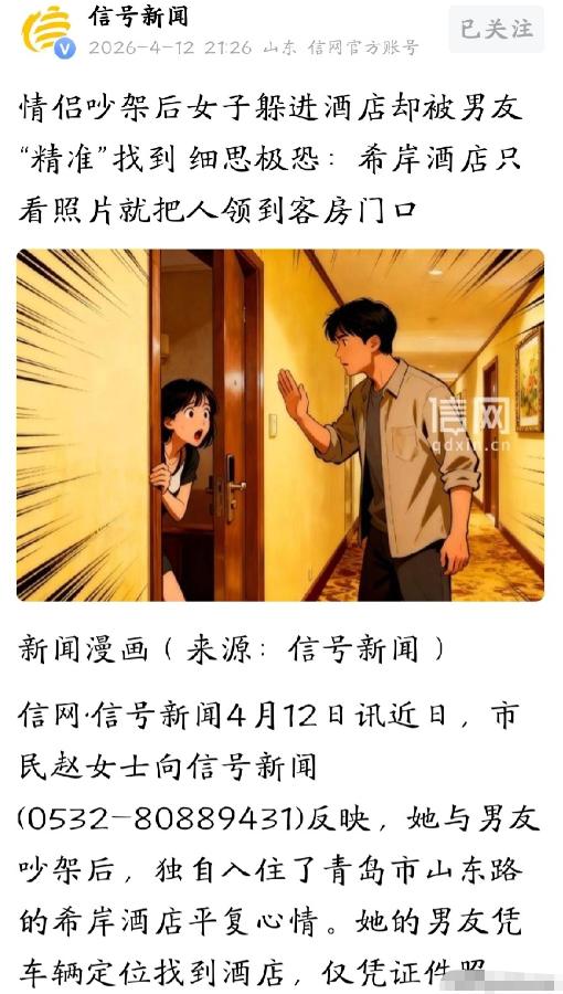 原来,当晚她的男友先是通过车辆定位找到了这家酒店,随后向前台出示了自己和赵女士的身份证照片——注意,仅仅是照片,没有任何实体证件,前台工作人员既没有核实照片的真实性,也没有主动联系赵女士确认,甚至只是简单核对了一下手机号尾号,就轻易相信了对方的说法,直接将他带到了赵女士的房间门口。