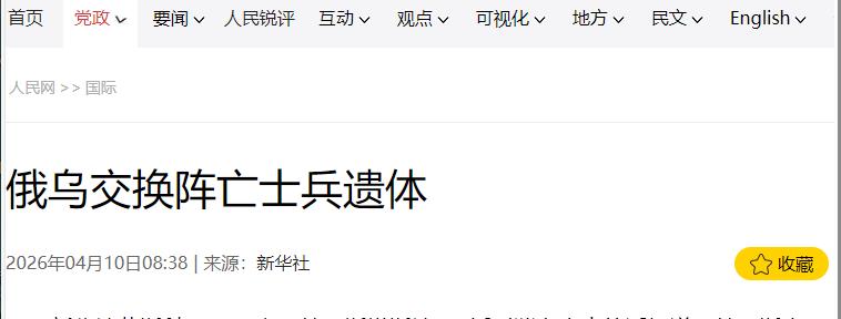 信息来源:《俄乌交换阵亡士兵遗体》,新华社,2026年4月10日。