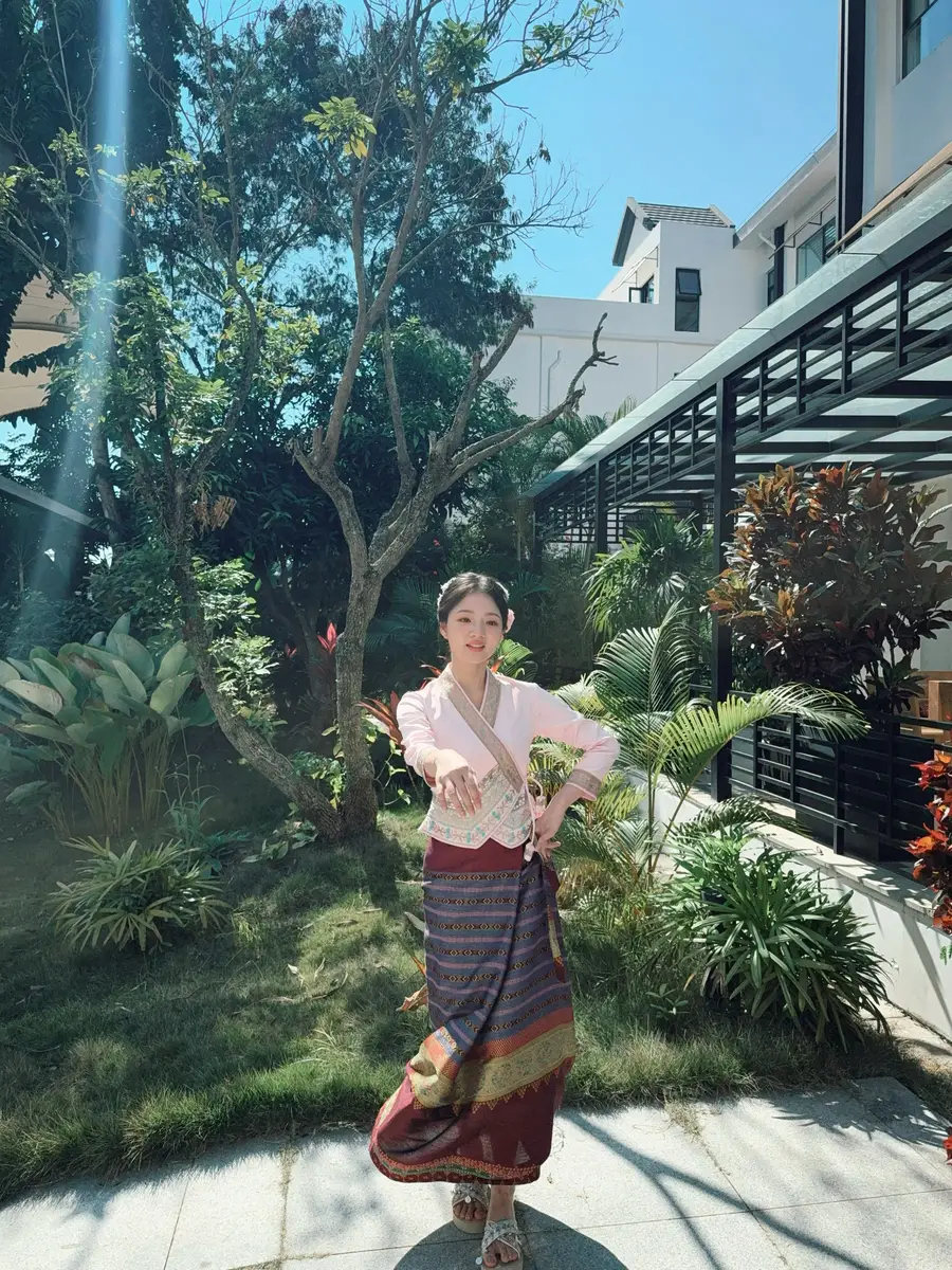 任敏穿傣族服饰清新又典雅 站植被中跳舞宛如精灵