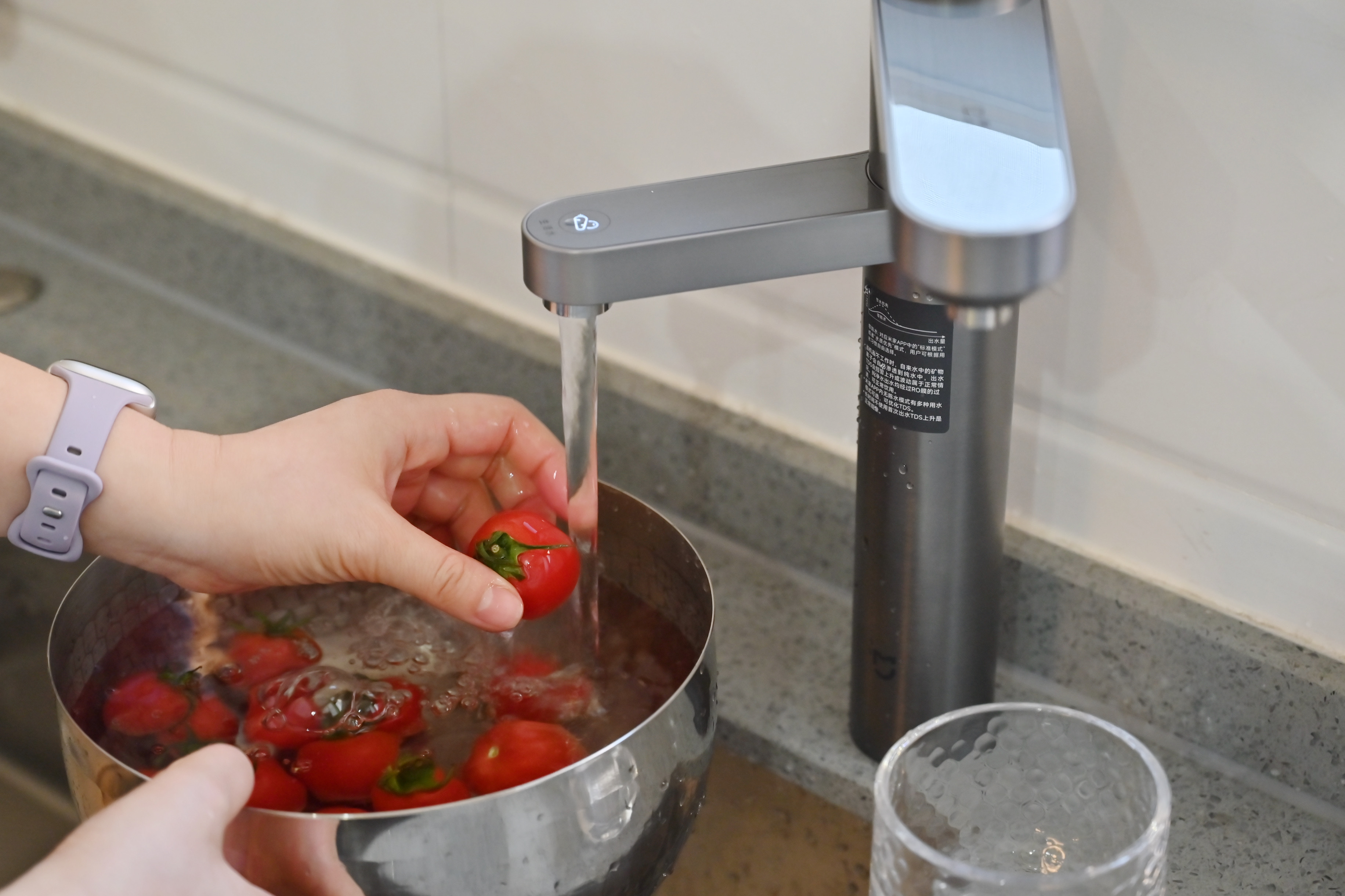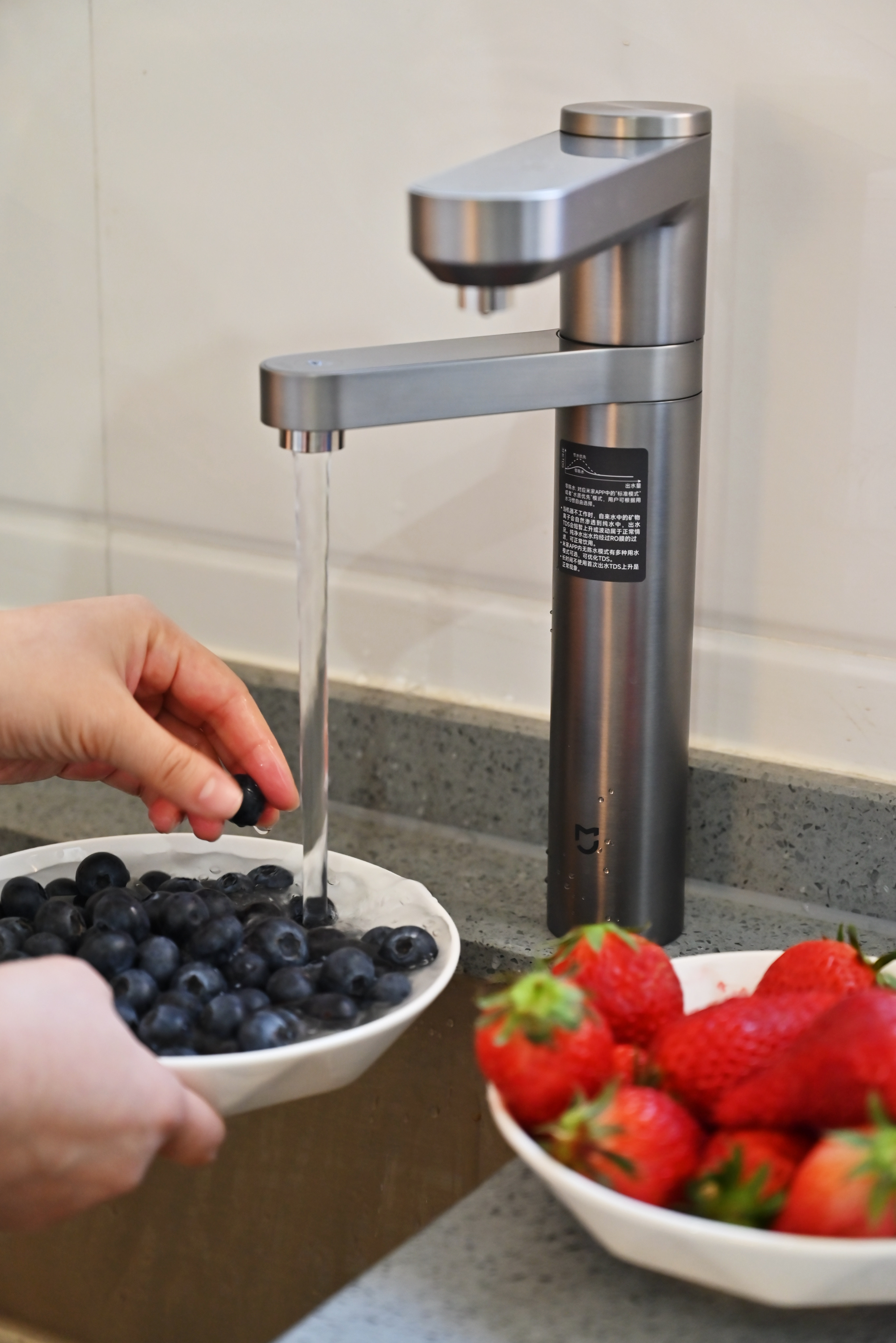 下龙头是专属的洁净生活水,5-8L/min的流速跟自来水几乎没差,洗菜、洗水果、刷碗都能随便用,完全不用心疼滤芯,也跟直饮水彻底分开,两条水路互不干扰,再也不会接混、用错,清清楚楚。