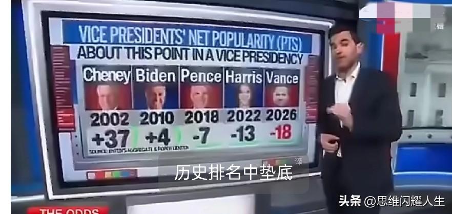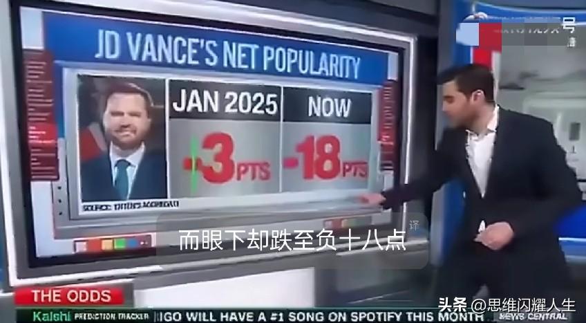 最新民调显示,美国副总统万斯的民调支持率从去年的正值3点,跌落到目前的负值18点,这在所有副总统中历史排名垫底。