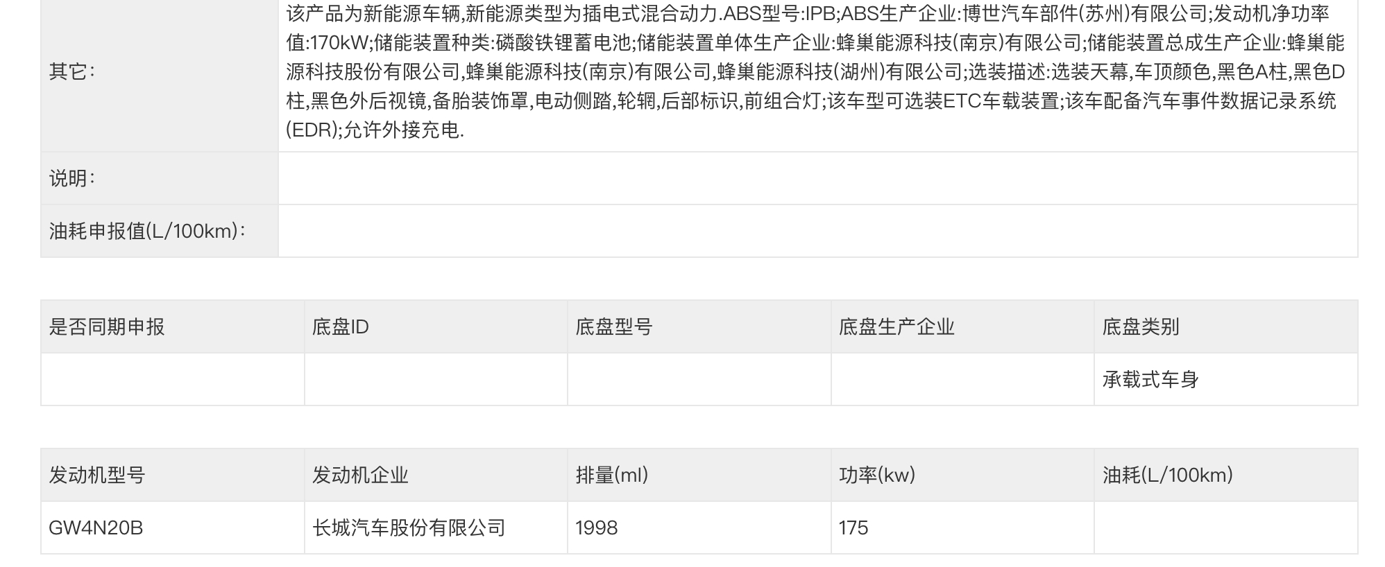 动力方面,新车基于长城归元平台打造,采用长城 Hi4 系列四驱越野架构,发动机提供1.5T和2.0T两种,最大功率分别为123kW、175kW;其中2.0T车型可以参考同平台的魏牌V9X,搭载的是2.0T+P2+P4 +4DHT的超级Hi4插混系统,支持800V高压平台,并拥有蟹行模式、极小转弯半径等主打技术,因此新车的越野性能和城市舒适性都值得期待。