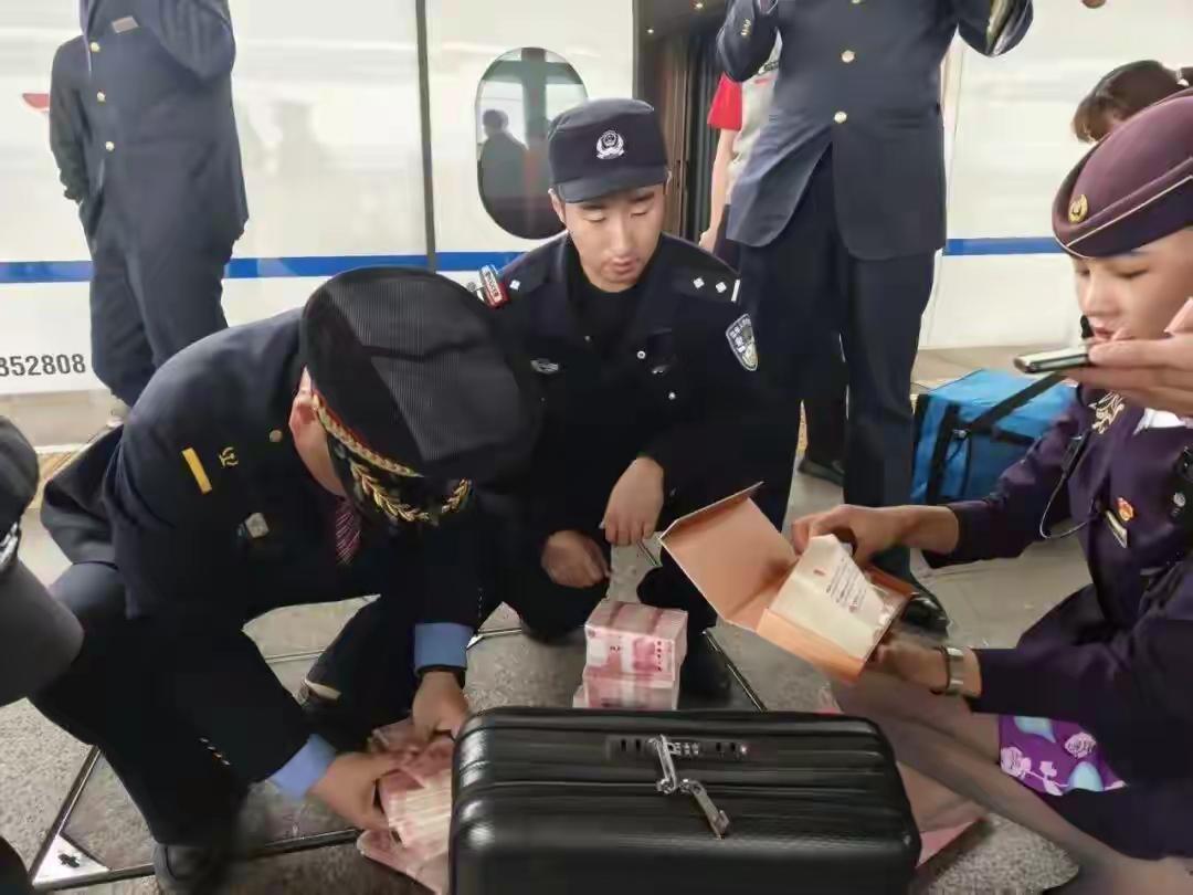 乘务人员当场录像开箱,当箱子打开的那一刻,在场的工作人员真的大吃一惊,满箱的整整齐齐的人民币,逐一清点登记,一共57万!