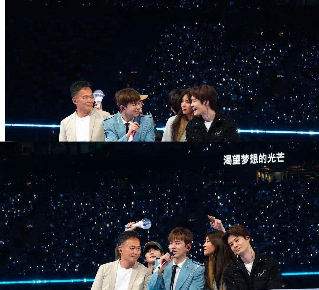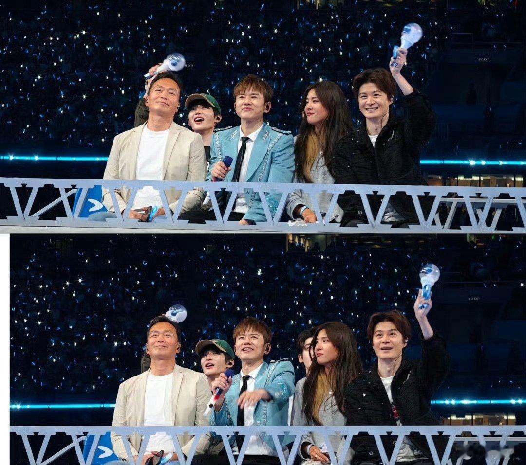 4月11日晚上,张杰太幸福了,鸟巢演唱会现场快乐家族一起过来了,真的好给力,尤其