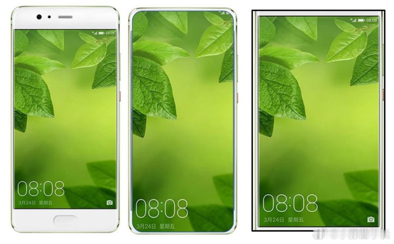 从左到右,依次是全面屏以前的主流手机,而今全面屏手机,以及华为阔折。